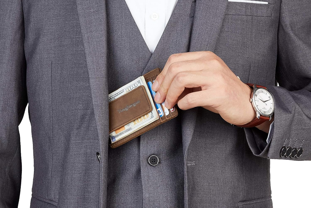 1. This sleek leather money clip and wallet set is a must-have! The genuine leather feels luxurious and durable, perfect for keeping bills and cards organized. Compact yet spacious, it fits easily in pockets without bulk. The classic design suits any style, making it a great gift or personal accessory. Love the quality and craftsmanship—definitely worth it!