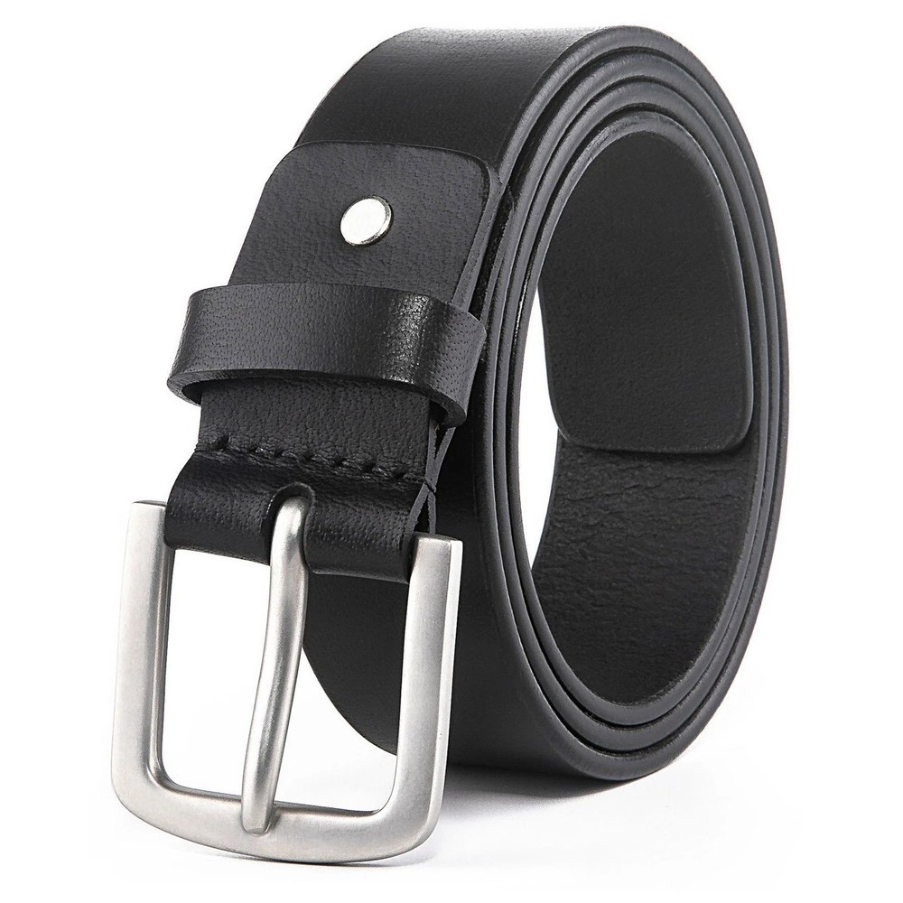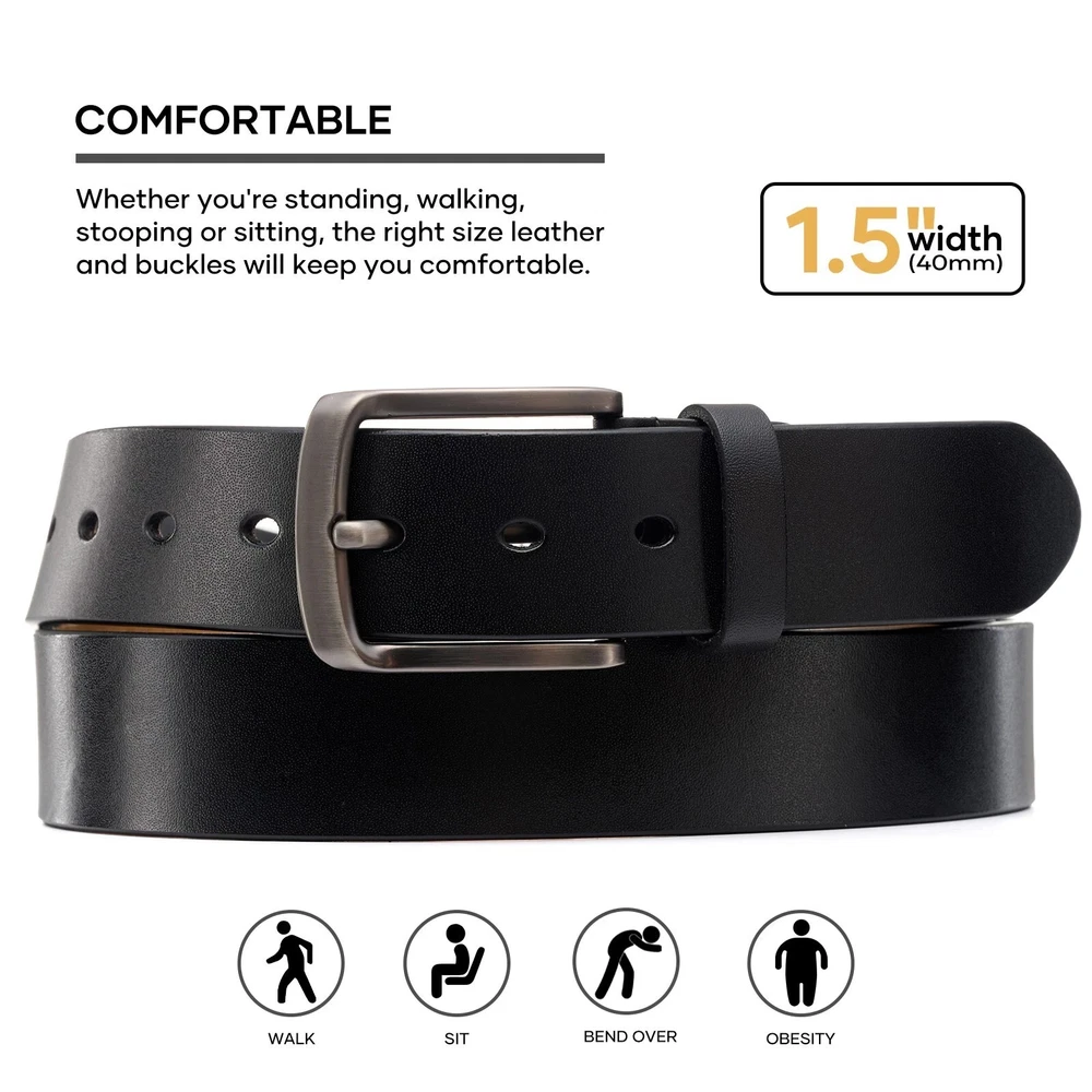 The Belt's Wide--1.5'' Premium Quality--100% Full Grain Leather High-quality alloy buckle--SCRATCH RESISTANT which made to last. Our genuine leather belt is highly constructed for a longer endurance and amazing performance. ORDER ONE SIZE LARGER THAN YOUR WAIST/PANTS SIZE .For example, if your waist/pants size is 32 inch, select size 32/34. If your waist/pants size is 34 inch, select size 36/38. Perfect for All -So comfortable it will become your everyday belt! Perfect for use every day as a work belt,a casual belt,a dress belt.This belt can literally do it all. If you are tired of the belts that always fall apart give us a try.Treat yourself to the belt that can replace ALL of your old belts. Ideal Gift for Dear Ones--It’s great for Christmas, birthday, anniversary, Father’s Day.