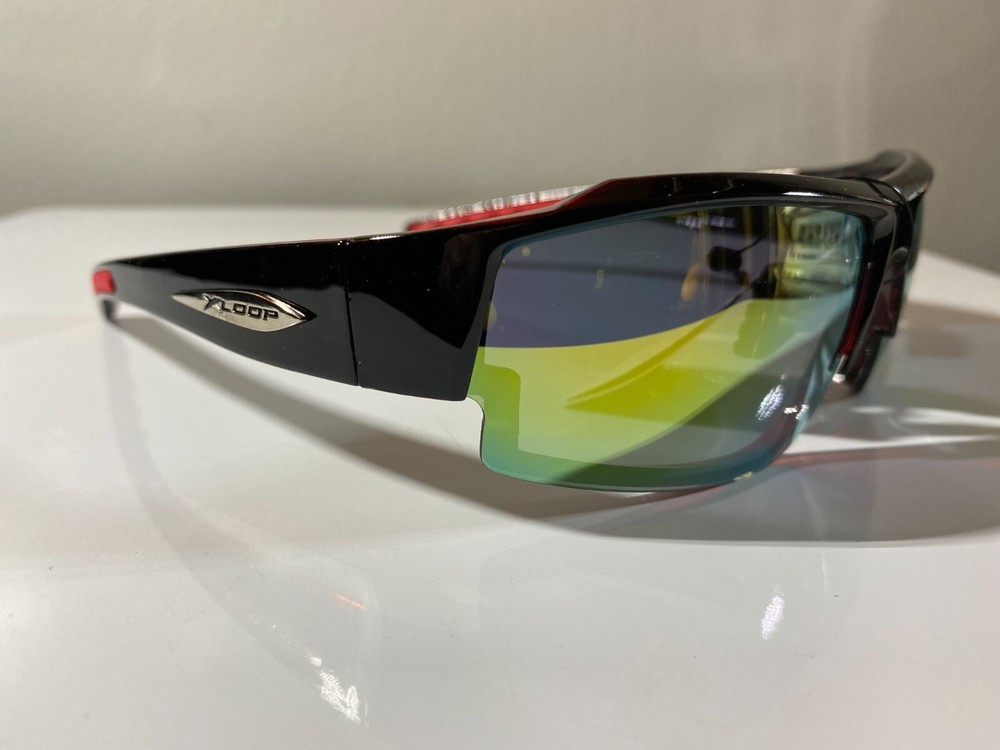 Men's wrap around sunglasses with black frame and yellow reflective lenses. Great price.