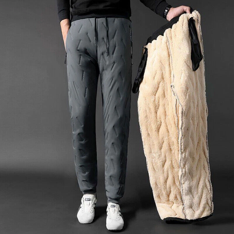 Men's fleece warm pants lined with waterproof sports winter warm pants-