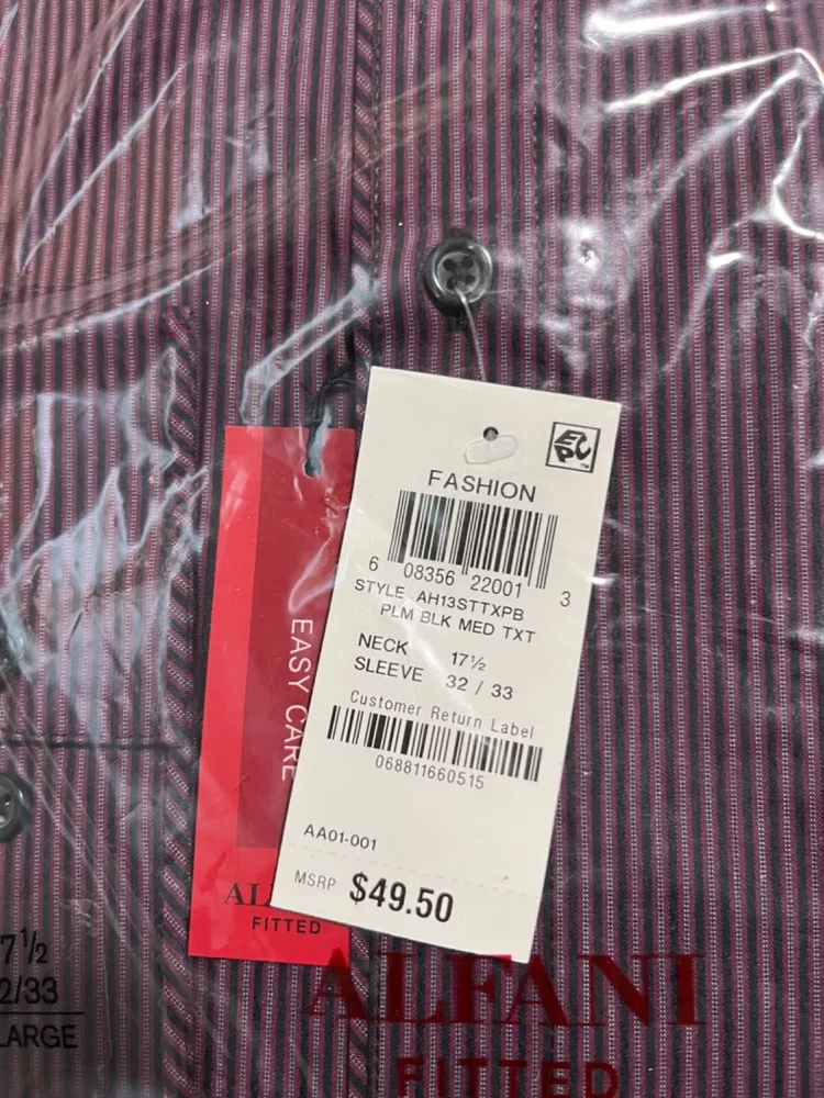 Department: Men Color: plum /black Size: 17.5 Size Type: Regular Brand: Alfani Neck Size: 17.5 Sleeve Length: long sleeve 32/33 Type: Dress Shirt