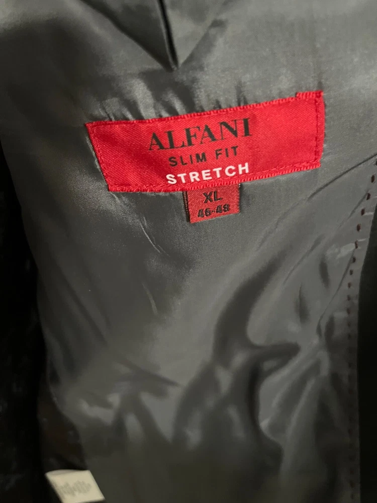 Type: dress jacket Size: 46/48 XL slim fit stretch Size Type: Regular Brand: Alfani Department: Men Color: Black Style: Dress Jacket
