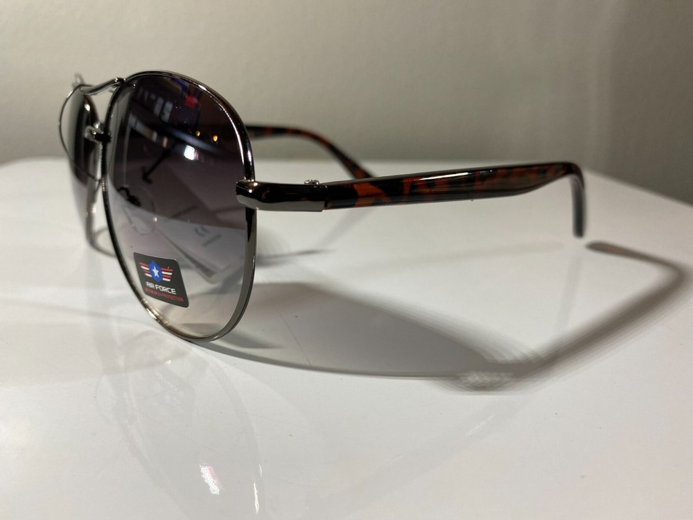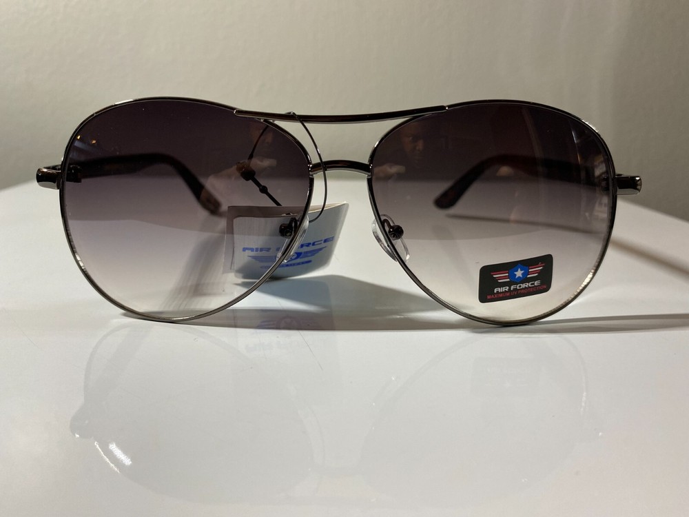 Frame Material: Silver Lens Color: Gray Type: Sunglasses Lens Technology: Tinted Department: Men Frame Color: Silver Style: Aviator Brand: Air force Theme: Metal