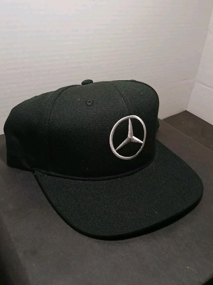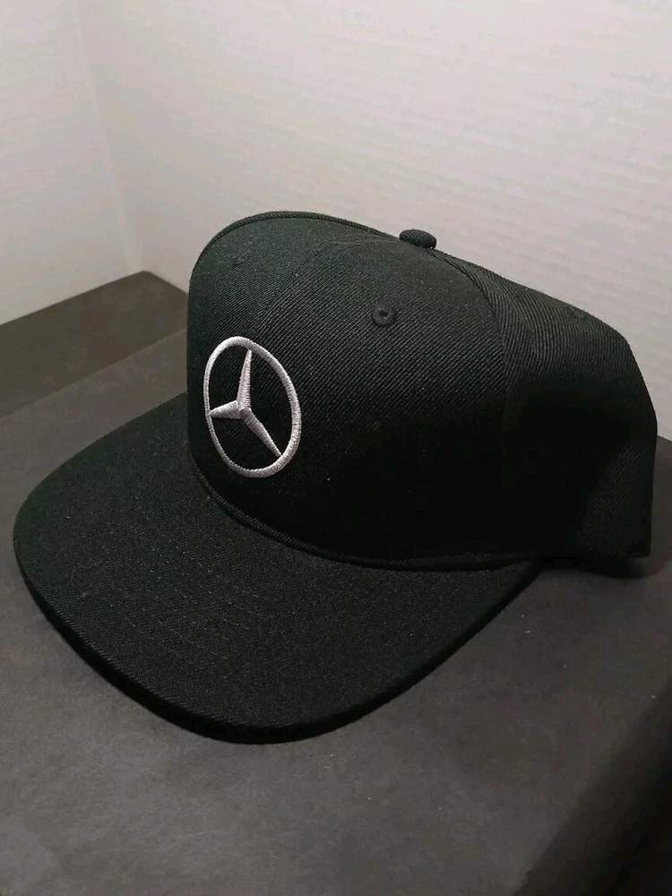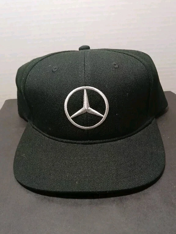 Mercedes Benz Flat Bill Trucker Mesh Snapback Cap Hat Black Embroidered.