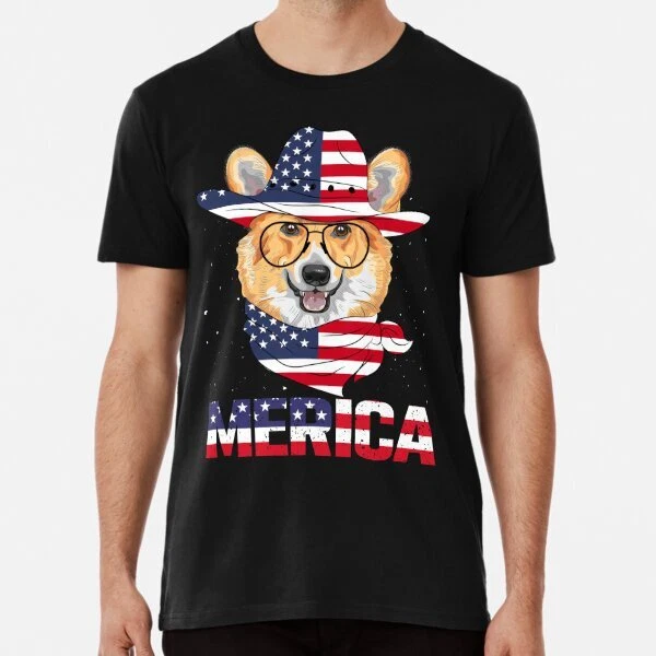 Merica Cute Corgi American Flag Men Women Great Gift Idea Premium T-Shirt S-5XL
