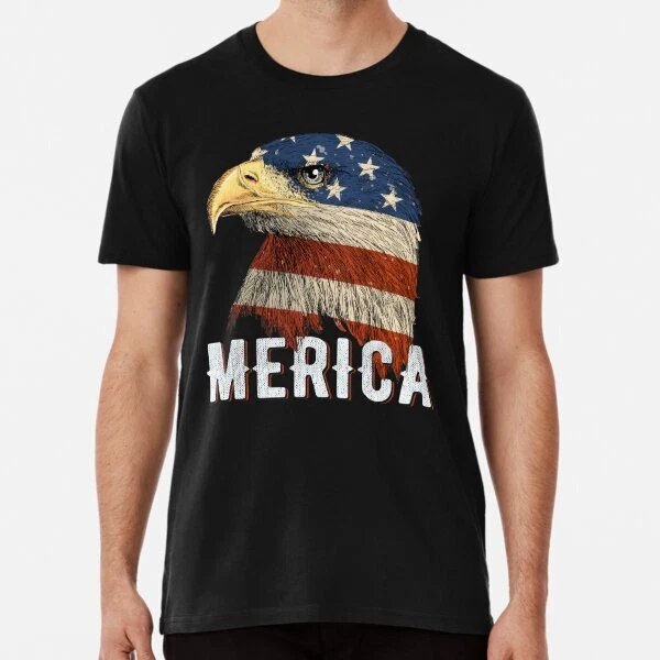Merica Eagle 4th of July American Flag Premium T-Shirt S-5XL