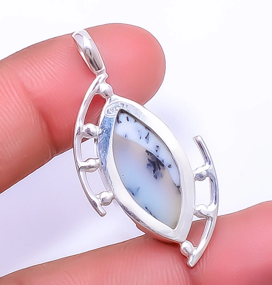 Theme Beauty Main Stone Depth As Seen in Picture Main Stone Length As Seen in Picture Main Stone Width As Seen in Picture Seller Warranty Yes Shape As Seen in Picture Wholesale Yes SKU P_9240_78_10 Unit Quantity 1 Unit Type Unit Main Stone Size 25X13 Mm Type Pendant Style Pendant Item Length 1.65" Main Stone Merlinite Dendritic Opal Main Stone Creation Natural Main Stone Shape Marquish Main Stone Treatment Natural Material Gemstone, Stone Metal Sterling Silver Metal Purity 925 Parts Per 1000 Base Metal Sterling Silver Cut Grade Very Good Setting Style Bezel Number of Gemstones 1 Brand Unbranded Country/Region of Manufacture India Color Silver Closure Not Applicable Chain Type Not Applicable Total Carat Weight 25 Number of Diamonds As Seen in Picture Features Engraved, Nickel-Free, Handcrafted Diamond Color Grade Not Applicable Diamond Clarity Grade Not Applicable Colored Diamond Intensity Not Applicable Certification 100% Genuine Guaranteed Pendant/Locket Type Pendant Occasion Christmas, Birthday, Anniversary, Engagement, Wedding, Valen Shipping & Handling - Charge - 1st item-5.90 And Additional item-1.90 Handling Time - 1 Days . Delivery Time - 2 TO 3 DAYS. Shipping Service - USPS First Class Package 2 -3 Days. Returns - 1.We offer a 100% Money Back Guarantee minus shipping for 30 days after receiving the Item / item's. 2..The item must not be altered or damaged in any way shape or form. 3.Upon receiving these items your payment will be refunded. 4.Email us for return instructions before sending merchandise back. 5.Please allow up to 1 business day for all returns to receive credit. 6.Sizing does not affect the return policy. Payment - We accept PayPal for Payment ,should made with in 14 days once buying or winning done , in case of late information expected .