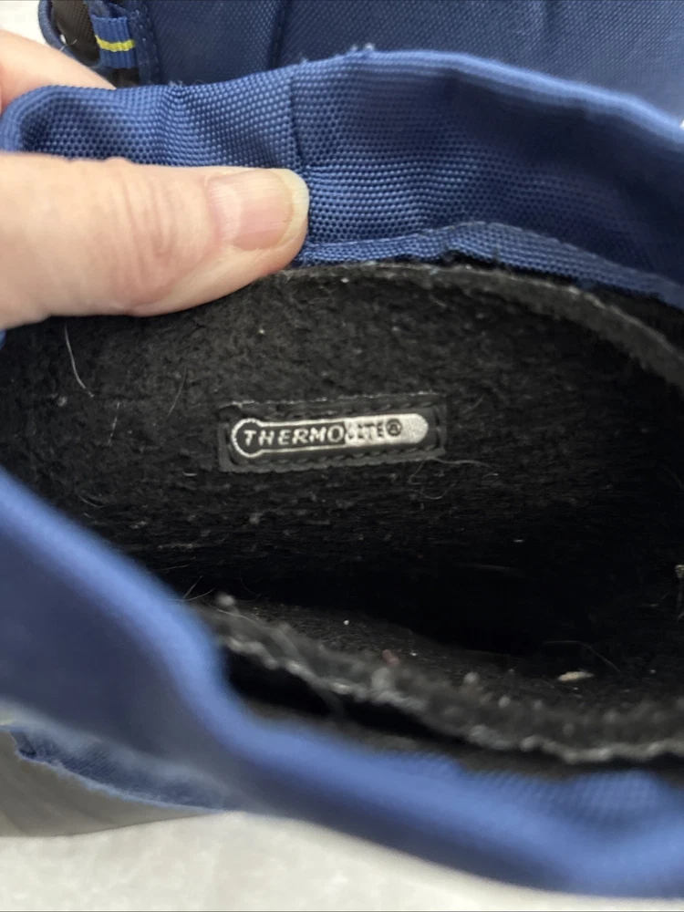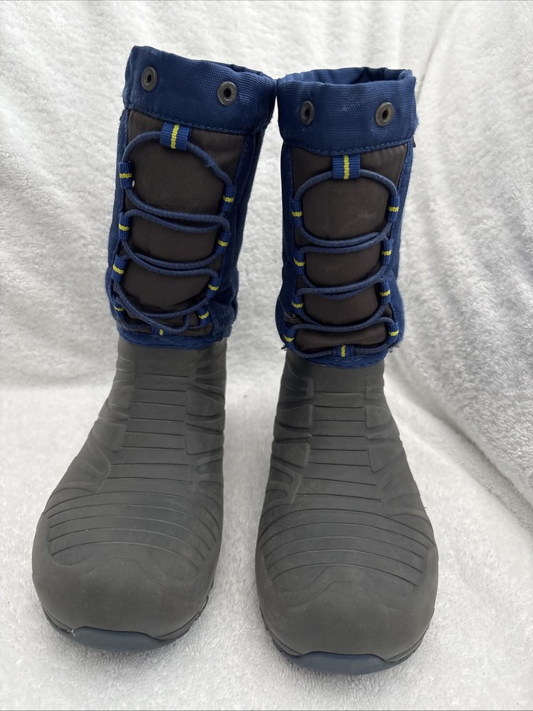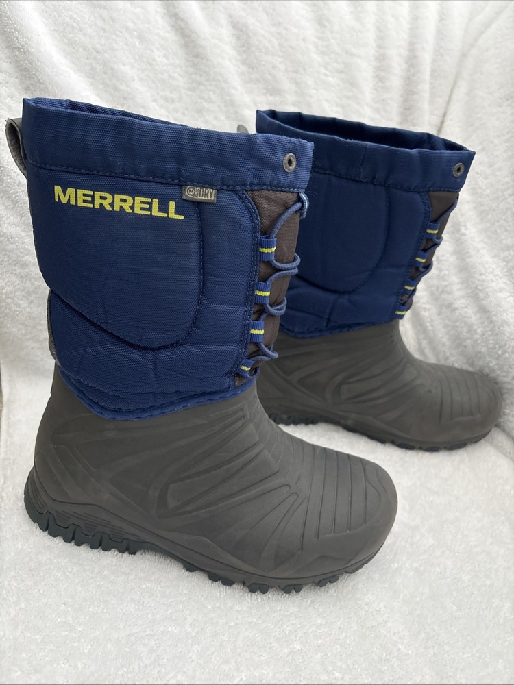 The Merrell Boy’s Snow Boots are designed for outdoor activities in winter, fall, and spring. These waterproof and insulated boots feature a round toe shape, pull-on closure, and moderate cushioning level for comfort. The blue and gray color combination and logo accents add a stylish touch to the snow boot style. Made with Thermolite insulation and a rubber outsole, these boots are perfect for snow and hiking adventures. Perfect for boys who love the outdoors, these Merrell boots are a practical and fashionable choice for active wear.
