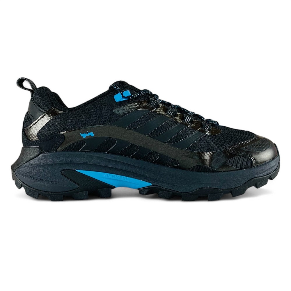 Merrell Moab Speed 2 x Jeep Black Blue Men's Trail Running Hiking Shoes J5007247 Two powerhouse outdoor brands come together to create these all new Merrell Moab Speed 2 x Jeep hiking shoes. These men's shoes are built for runners, athletes, and anyone who likes the outdoors. The Moab Speed is a lightweight, protective hybrid designed to give you confidence to tackle any trail. These shoes feature a padded collar plus a bellows tongue that keeps out debris. Their lightweight FlexPlate™ technology provides torsional rigidity, lateral stability, and forefoot flexibility, while their Vibram® TC5+ outsole provides exceptional traction for outdoor multi-sport activities. Get in touch with nature while repping your favorite car brand when you take home your very own, brand new pair of these Merrell Moab Speed 2 x Jeep hiking shoes. Product Condition These shoes are brand new and include their original shoe box, unless otherwise noted. The shoe box may have minor damage. This is a 100% authentic product, guaranteed or your money back. Sizing All size options provided in this listing are U.S. men's shoe sizes. Please reference the chart appearing in our product images to find your approximate size conversion (e.g. UK sizes, EU sizes, etc.). More Details Suggested Retail Price: $180 Brand: Merrell Model: Moab Speed 2 x Jeep Style Code: J5007247 Gender (for sizing): Men Age: Adult Main Color: Black Customized: No Closure: Lace-up Shoe Shaft Style: Low-top Great For: Hiking, Trail Running, Running, Jogging, Walking, Running Errands, Going Out, Daily Activities, Casual Wear, Going to Work