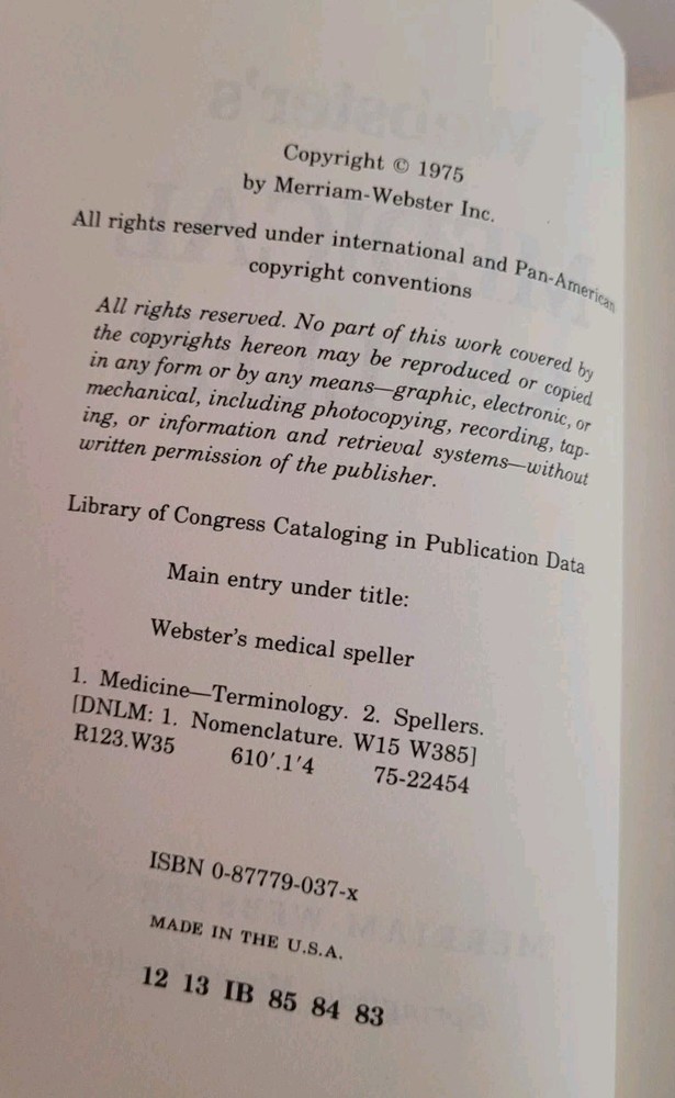 Merriam-Webster's Medical Speller (1975, Hardcover) Book Medicine Divided
