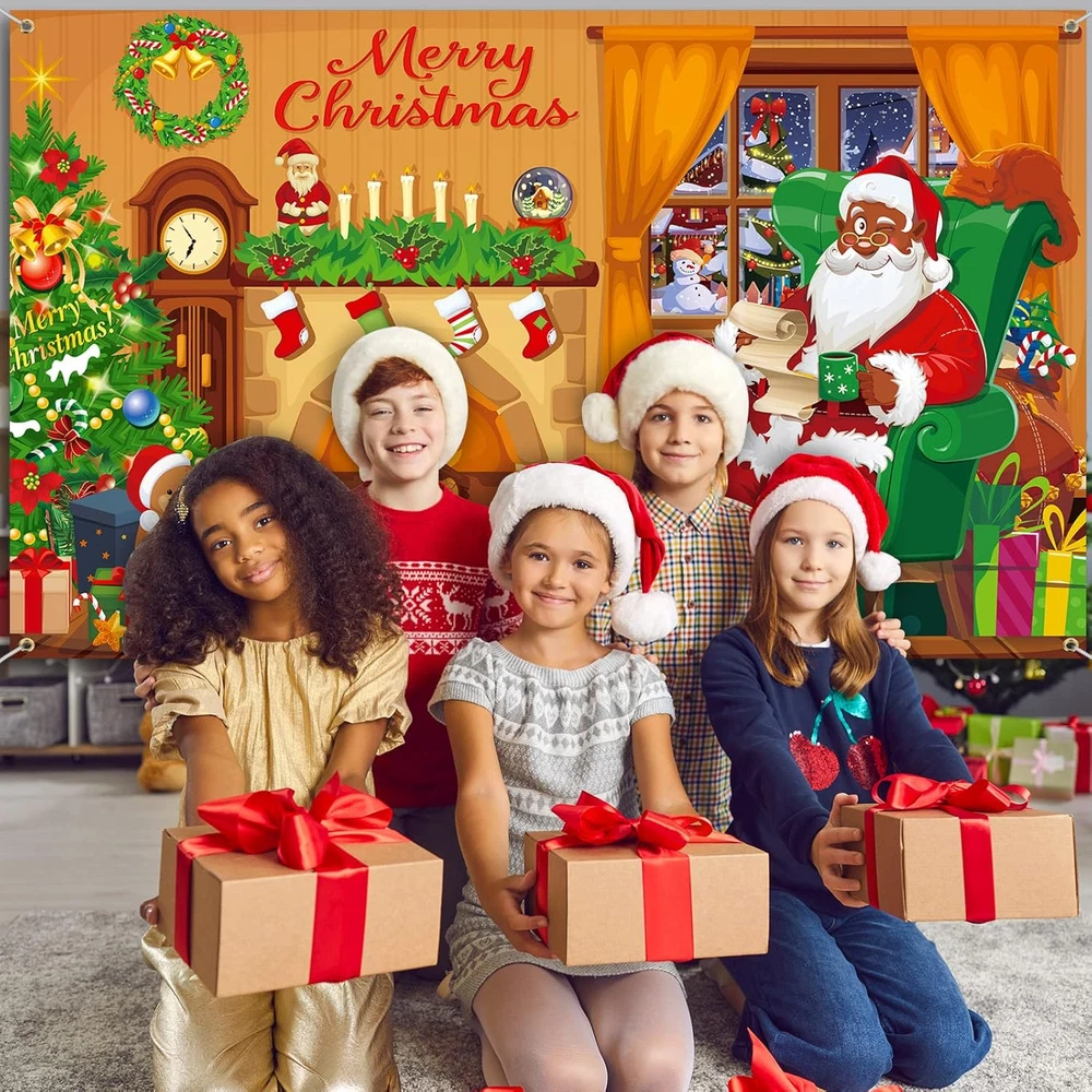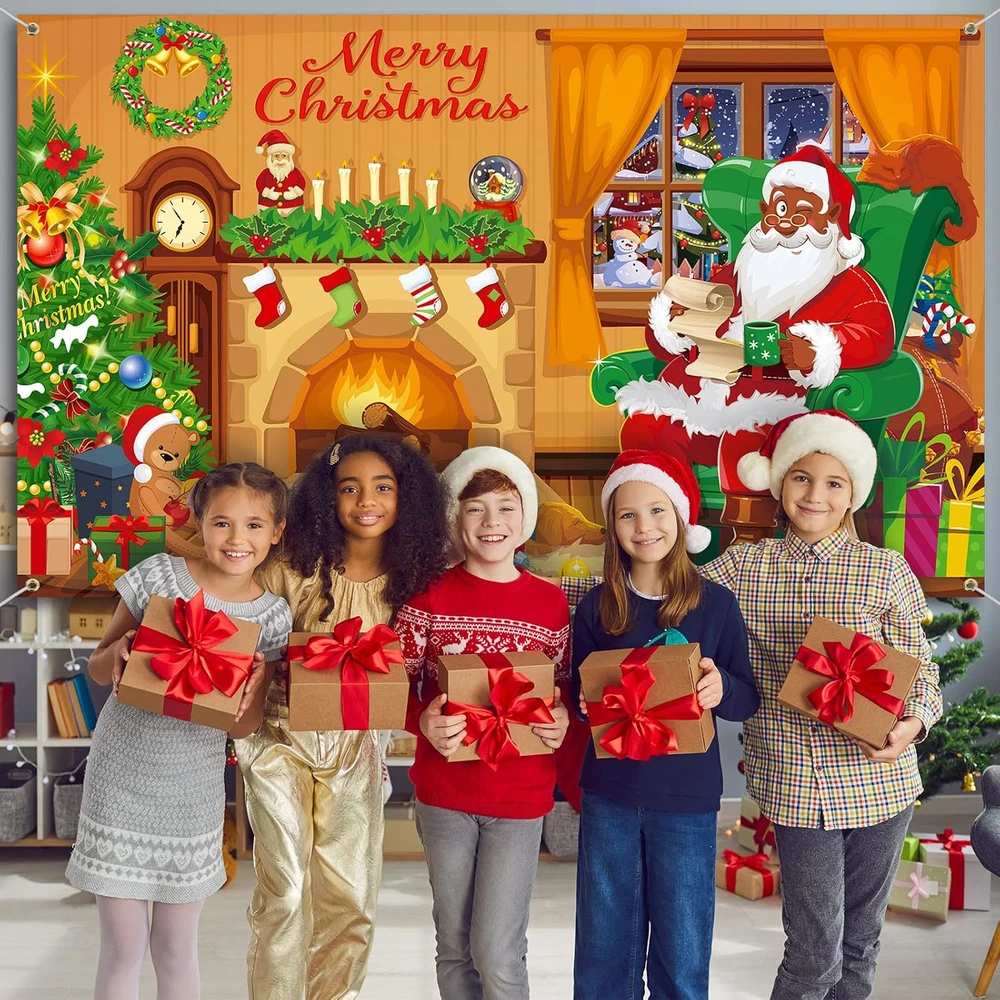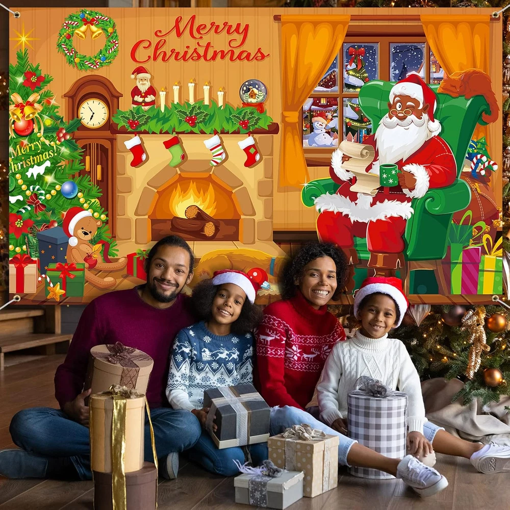 Menu Other Items Feedbacks About Us Contact Us Add To Favorites Merry Christmas Backdrop Xmas Black Santa Claus Background Decoration for Photography Fireplace Wall Hanging Banner Photo Booth Prop for Winter Home New Year Holiday Party Favor Supplies What You Will Receive: you will get 1 piece of Christmas backdrop with 4 holes on 4 corners, and equipped with 1 piece of long enough rope to support your different hanging purposes, which is very convenient for you to hang it indoors or outdoors Appropriate Size: the Christmas banner sign measures approx. 185 x 110 cm/ 72.8 x 43.3 inches, and the proper size is suitable to decorate walls and doors, and makes it easy to install and hang in the party theme; In addition, it is also ideal for taking photos with family and friends, leaving an impressive memory for you Christmas Themed Decor: the Christmas backdrop is printed with patterns of the black Santa Claus sitting by the fireplace, Christmas trees colored in classic red and green, snowman and some other Christmas elements, befitting for your Christmas party and making a warm atmosphere to your holiday Quality Material: Christmas photography backdrop is made of quality polyester fabric, with clear and vivid printing, weather resistant and tear resistant, washable and reusable, which is serviceable and can serve you for a long time Wide Range of Use: Xmas photo background is not only a nice decoration for various parties, such as Christmas parties, New Year parties, winter parties, Christmas events, birthday parties, etc., but also recommended as tablecloth, wallpaper, curtain, and photo studio background Product Description Item Specification Product Care Instructions hang it Occasion Christmas Product Dimensions 72.83"L x 43.31"W Item Dimensions L x W 72.83"L x 43.31"W Size 185 x 110 cm SHIPPING FREE FAST SHIPPING FREE SHIPPING We are always working hard to ensure your package arrives as soon as possible. Please understand that some factors like weather, high postal traffic, and the performance of shipping companies are outside of our control. We offer free shipping to the lower 48 states. We do not accept P.O. Boxes. Please provide a physical address. If you have a problem or question regarding your transaction please contact us immediately. We will work with you to resolve any problem you may have. Thank you