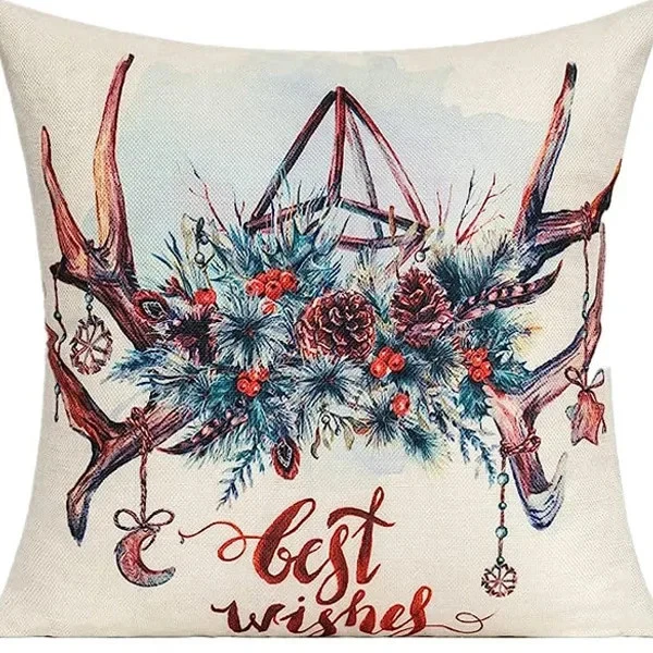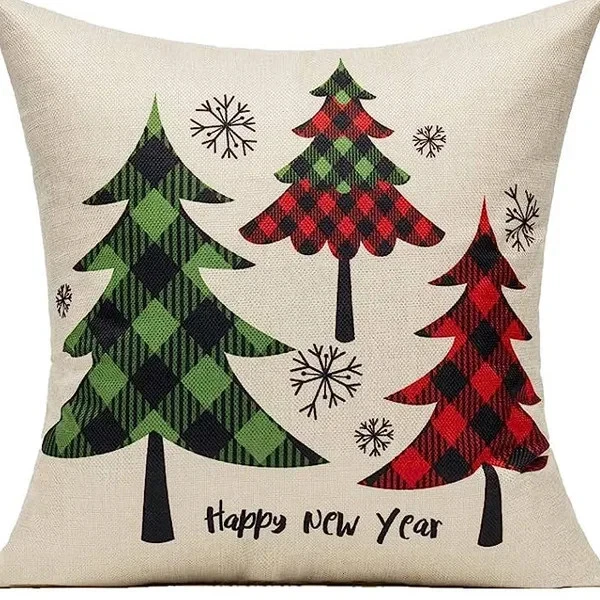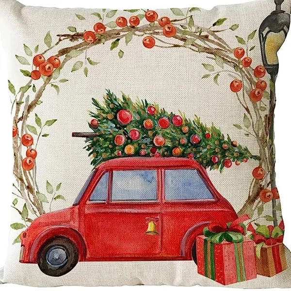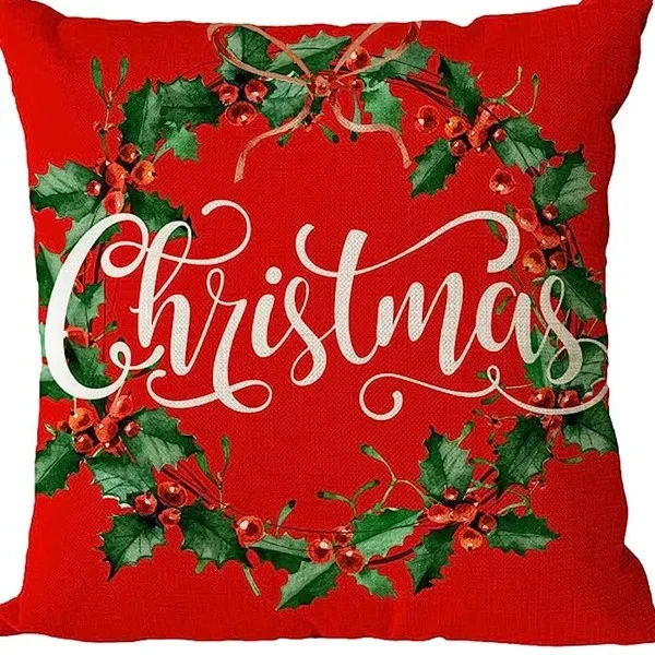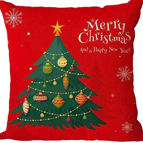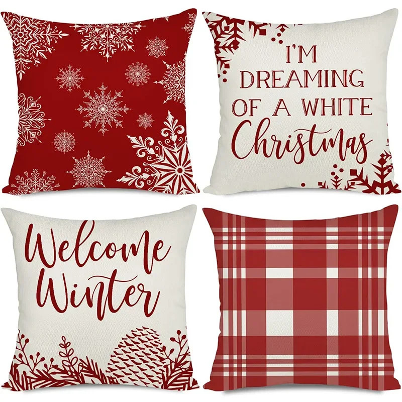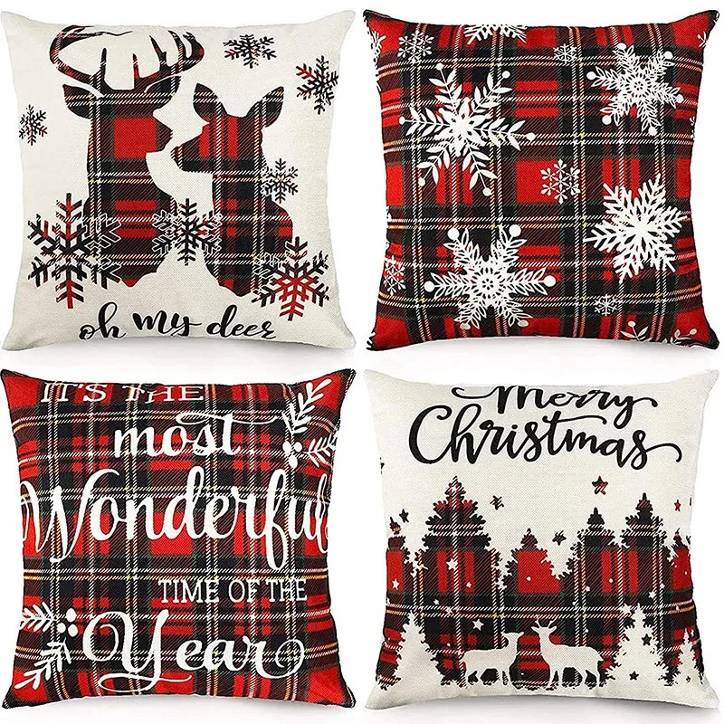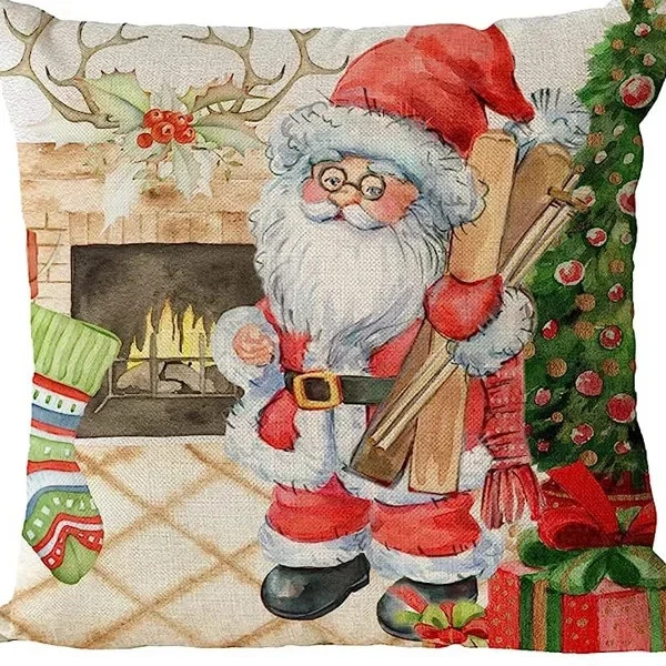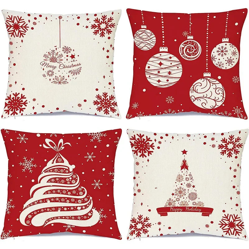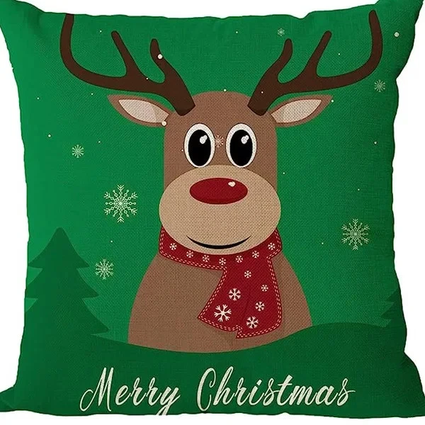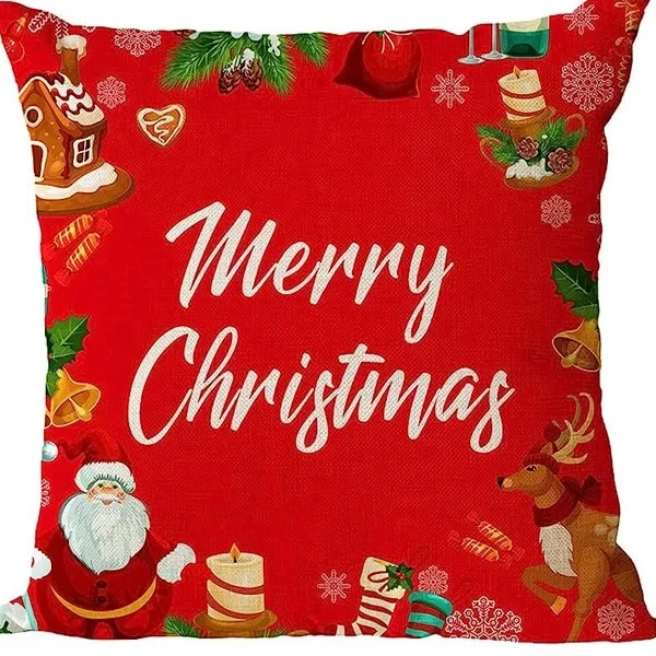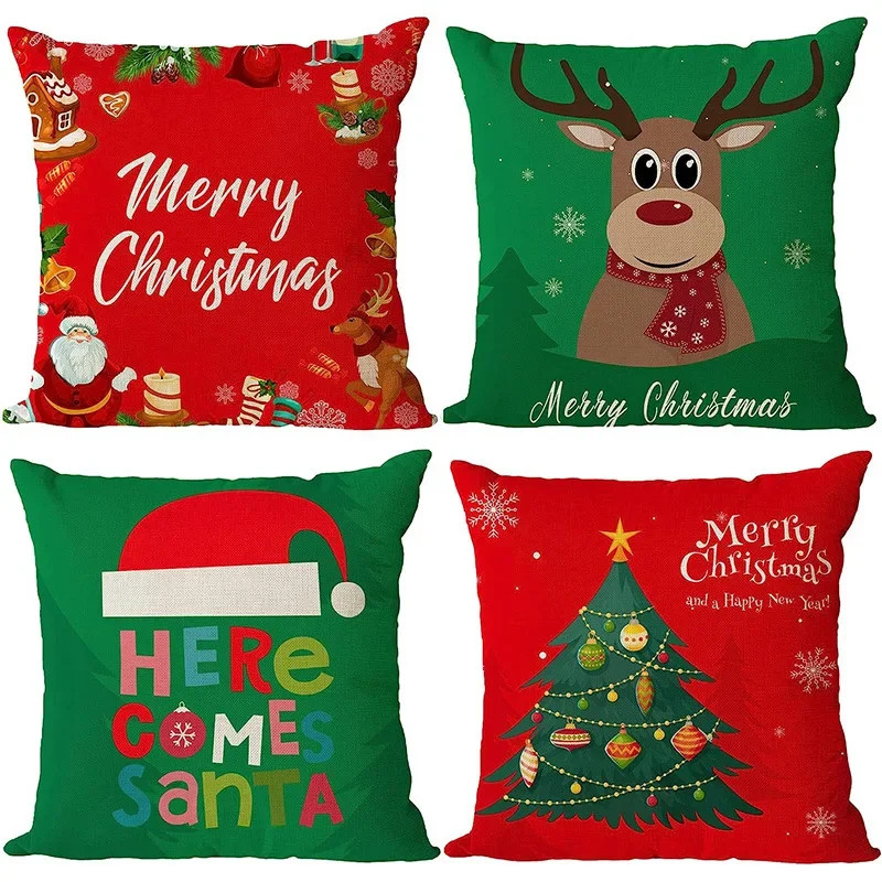 $ 17.424pcs Christmas Cushion Covers Santa Reindeer Snowman Tree Prints Zippered Durabl