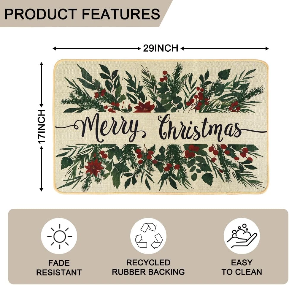 Store New Arrivals Add to Favorite View Feedback Contact Fast deliveries to the customer's home Quality customer service John Make the customers happy! Merry Christmas Door Mat,Holly Leaves Christmas Doormat Non Slip Rubber Absorbent Xmas Front Door Mat for Indoor Outdoor Decorations 29×17 Inch Description Package:Includes a 29×17inch Christmas door mat printed with "Merry Christmas" blessing words and pine leaves red berry,suitable for Christmas decoration. Material:Merry Christmas Doormat is made of high quality textured polyester fiber with non-slip rubber backing, which is not easy to fade,not easy to deform, durable and so on. Easy To Clean:Simply sweep off the dust with a broom or clean it with a vacuum cleaner, or you can just rinse it with a hose and dry it naturally. (Note: not bleaching). Good Decoration:Xmas doormat is printed with the classic “Merry Christmas” blessing and pine leaf berry pattern, it will help you increase the Christmas atmosphere. Applicable Occasion:Christmas doormats are suitable for decorating living rooms, dining rooms, and can also be used on patios, porches, front doors, backyards, or any entryway. Merry Christmas Door Mat,Holly Leaves Christmas Doormat Non Slip Rubber Absorbent Xmas Front Door Mat for Indoor Outdoor Decorations 29×17 Inch Item model number HH-US-XM395M1P1 Style Art Deco Weave Type Braided Back Material Type Polyester Color Yellow Pattern Leaf Material Polyester, Rubber Country of Origin China Pile Height Low Pile Item Weight 1.4 Pounds Shape Rectangular Construction Type Handmade Model Name Merry Christmas Door Mat Product Dimensions 29"L x 17"W ABOUT US We offer the best prices around on high quality products. Our E-store includes media such as books, movies, music and games while offering electronics, toys, sporting apparel, clothing, tools, general home, garden items and more. SHIPPING We are always working hard to ensure your package arrives as soon as possible. Please understand that some factors like weather, high postal traffic, and the performance of shipping companies are outside of our control. We offer free shipping to the lower 48 states and ship within 2 business days of payment, usually sooner. We do not accept P.O. Boxes. Please provide a physical address. For shipping outside of the continental USA, we only use eBay's Global Shipping Program. The item is shipped to KY and then sent to the rest of the world. International customers are responsible for all duties and taxes. Continue to 'check out' to calculate costs for shipping the item to your country. Messages regarding eBay's Global Shipping Program MUST be directed at eBay EXCLUSIVELY. RETURNS We offer a 30-Day Return Policy on items in which you are not completely satisfied with. You have the option of a full-refund or an exchange of the item. No returns are available on items shipped outside of the USA PAYMENT We accept PayPal. CONTACT US This page content is yet to come Please ad us to your favorite seller and visit again later Thank You CUSTOMER SATISFACTION We try our very best to make sure every customer is completely satisfied. If there's a problem, message us! We're happy to help. WE ACCEPT