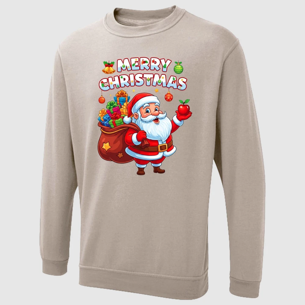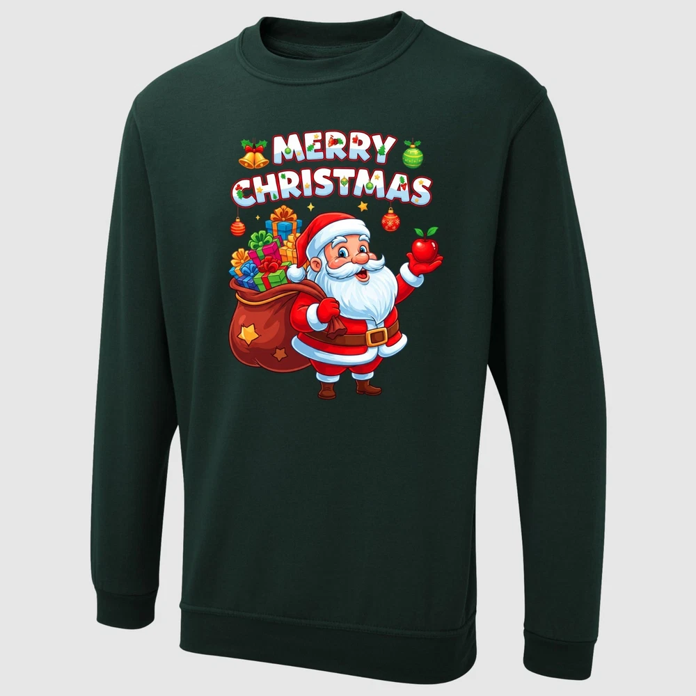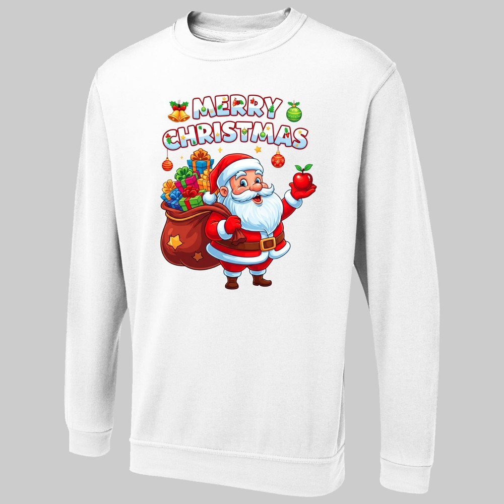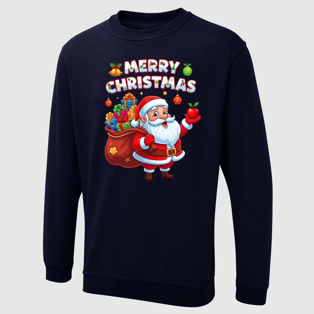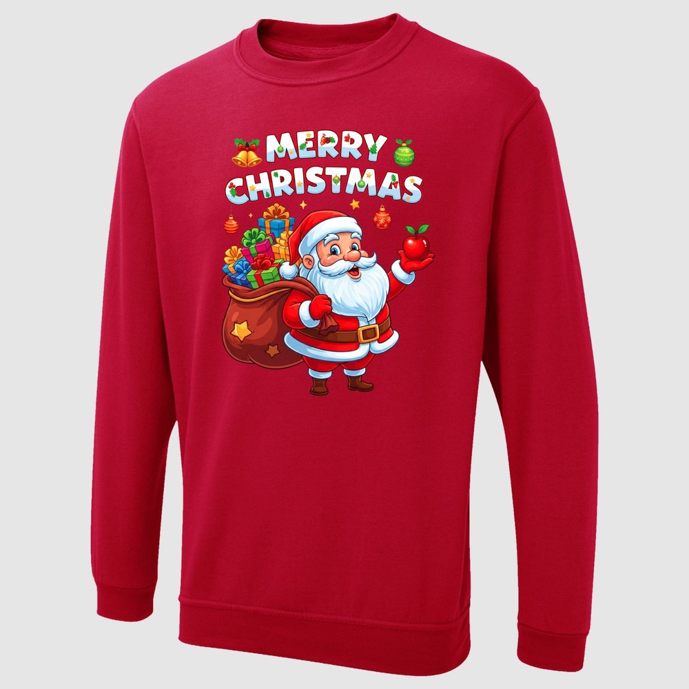 Merry Christmas Sweatshirt Printed Festive Santa Claus Xmas Holiday Gift Jumper PRODUCT SPECIFICATION: Fabric: 50% Polyester 50% Cotton Weight: 300 gsm Reactive Dyed Set in Sleeve Lycra Ribbed Cuffs, Welt & Neck Twin Needle Stitching at Neck, Shoulders, Armhole Brushed Effect for Superior Comfort & Look ADULTS SIZE CHART: Body Measurement XS S M L XL 2XL 3XL 4XL Chest to fit (Inch) 36-38 38-40 40-42 42-44 44-46 46-48 50-52 52-54 Chest to fit (cm) 91-96 96-101 101-107 107-112 112-117 117-122 122-132 132 - 137 International conversion XS S M L XL 2XL 3XL 4XL Austria, Switzerland, German, Netherlands, Sweden 44 46 48 50 52 54 56 58 Belgium, Spain, France, Portugal 36-38 38-40 40-42 42-44 44-46 46-48 48-50 50-52 Garment Measurement (Inches) XS S M L XL 2XL 3XL 4XL Length (SNP on Shoulder to Hem) 26 ¾ 27 ½ 28 ¼ 29 30 30 ¾ 31 ½ 32 ¼ Sleeve Length (Shoulder to Cuff inc. Rib Trim) 23 ½ 24 24 ½ 24 ½ 25 25 ½ 26 26 ¼ ½ Chest (1 inch below armhole) 18 19 ½ 21 22 ¾ 24 ½ 26 27 ½ 29 Garment Measurement (cm) XS S M L XL 2XL 3XL 4XL ½ Chest (2.5cm below armhole) 46 50 54 58 62 66 70 74 Length (SNP on Shoulder to Hem) 68 70 72 74 76 78 80 82 Sleeve Length (Shoulder to Cuff inc. Rib Trim) 60 61 62 63 64 65 66 67 SIZE DISCLAIMER: Garment Measurement are subject to tolerances which is +/-0.5-1.5 Inches. They are not be taken as absolute measurement values. When a garment is measured, the values may vary and can be above, below or the same as the values stated. IMAGE DISCLAIMER: Please note that all the images shown on this AD reflect the product at the time image was taken and uploaded. Therefore the images may differ slightly in colour, size, appearance and/or packaging than the stock we ship as our stock is refreshed and updated on regular basis. RETURNS DISCLAIMER: We do not accept returns on Personalised Goods as you can appreciate these are made on Order specially on request. Please Contact us via eBay message centre if there is Fault in Printing OR Item is defective OR Sent wrong as extra effort/Care is made to minimise the error on every single order. FEEDBACK: If you feel that we did not meet your expectations, PLEASE CONTACT US through eBay message centre before opening a case or leaving us a Neutral/Negative Feedback. We normally reply within 48 Hours during working hours which are Monday to Friday 9:30 AM to 5:00 PM BST If you have any questions or query related to our eBay listing, please ask through eBay message centre so we can assist and provide more information.