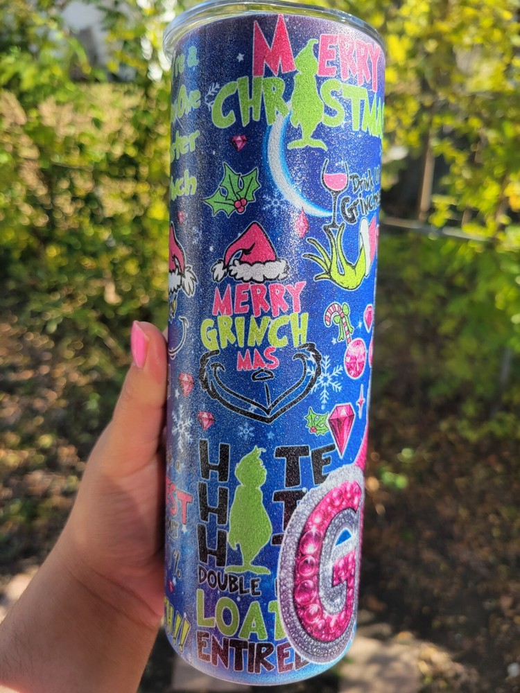 Type: Tumbler Theme: Christmas Capacity: 20 oz Care Instructions: Hand Wash Only Features: Glitter Color: Multicolor Glassware Type: Drinking Glass Material: Stainless Steel Model: Merry Grinchmas Glitter Set Includes: Tumbler, Cup Lid, Straw Brand: Unbranded