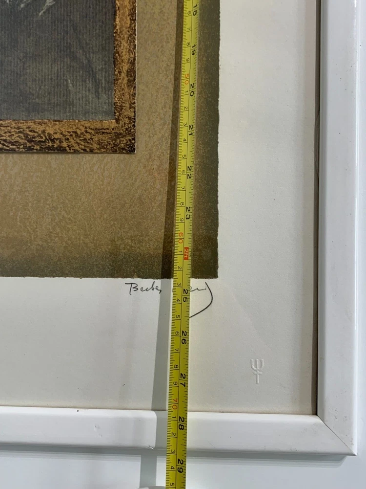 Discover the abstract elegance of Mersad Berber's "Flora," a hand-signed mixed media that captures the essence of modernism with a touch of Bosnian culture. This portrait-oriented artwork on paper, originating from the contemporary period of 1990-1999, is a unique piece that stands out with its one-of-a-kind presence. Berber's "Flora" is a testament to the artist's distinctive style, featuring women as its subject and embodying the thematic richness of art. Encased in an elegant frame, signed by the artist himself, and ready to grace any collection with its abstract beauty. From Wiki Early life Berber was born in Bosanski Petrovac, Kingdom of Yugoslavia.[2] He trained at the Academy of Fine Arts in Ljubljana where he graduated with a BA and MA.[3] In 1978, Berber received a teaching position at the Academy of Fine Arts in Sarajevo. Art Today Berber is one of the best known graphic artists in the world. He was included in the Tate Gallery collection in 1984. Throughout his career he created cycles of paintings which chronicle events, homages and dedications. Each cycle has its roots in Bosnian-Herzegovinian history from the medieval to the twentieth century. His works are characterized by the intermingling of ancient motifs with a more modern commentary, captivating in their iconic mystery and intensity. His surfaces are as complex as his subjects, combining techniques from various times and places while maintaining an aesthetic and allure that has drawn collectors for the past 40 years.[2] Berber was occupied with painting, graphic art, tapestry, illustrating and preparing bibliographic editions, graphic and poetic maps. His scenography and costume design came to life in theatres in Ljubljana, Zagreb, Sarajevo and Washington. In 1985 Berber finished Tempo Secondo, his own animated cartoon. From 1992 until his death in October 2012 Berber resided and worked in both Zagreb and Dubrovnik. Awards From 1966 on Berber received more than fifty awards. Among many international prizes he received: Gold Medal and Honorary Diploma at the First International Exhibition of Graphic Art in Trieste, first award at the 11th International Biennale in São Paulo, Honorary Prix at the 10th International Biennale of Graphic Art in Tokyo, first award at the 7th Mediterranean Biennale in Alexandria, ICOM award in Monte Carlo, the Kraków City award at the 4th International Biennale of graphic art, and the Lalit Kala Academy Grand Prix at the 5th Indian Triennale in New Delhi. Kraków Grand Prix in 1997, an Ostend exhibition entitled "Between earth and heaven" and a recent one "Artist of the ideal" in Verona, selected by famous art critic Edward Lucie-Smith, confirmed Berber as one of the most significant contemporary artists. Comprehensive monography studies of Berber's art were published by Mladinska Knjiga, Ljubljana in 1980 and 1985, by Sol Intercontinental, Ljubljana in 1997 and by E&A Agency, Zagreb in 2000.