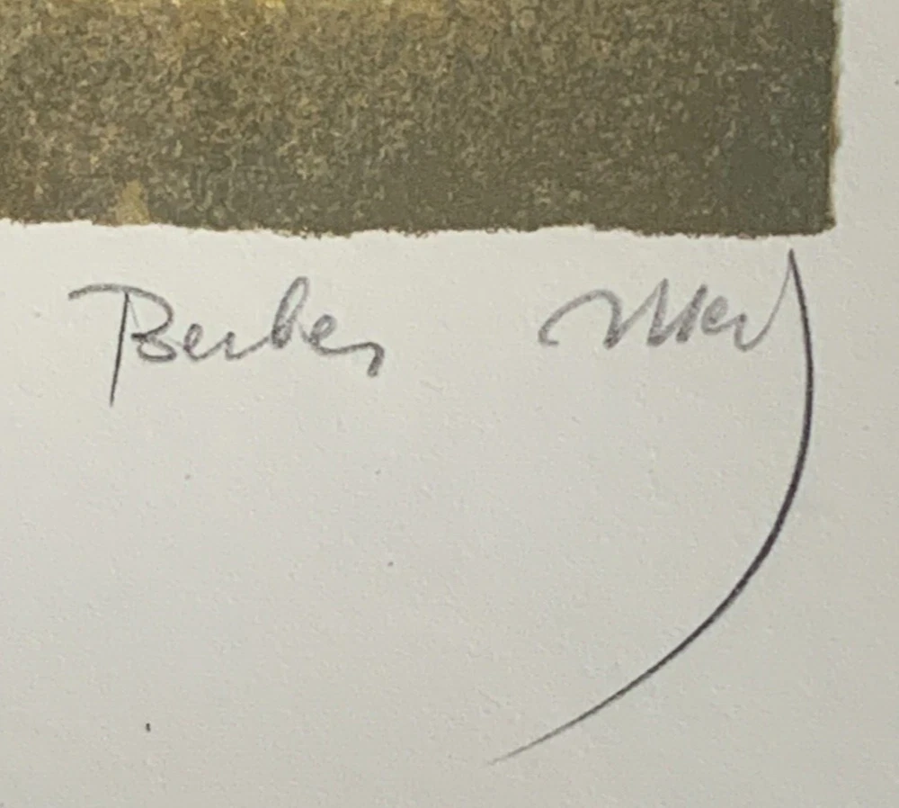 Discover the abstract elegance of Mersad Berber's "JELENA," a hand-signed mixed media that captures the essence of modernism with a touch of Bosnian culture. This portrait-oriented artwork on paper, originating from the contemporary period of 1990-1999, is a unique piece that stands out with its one-of-a-kind presence. Berber's "Jelena" is a testament to the artist's distinctive style, featuring women as its subject and embodying the thematic richness of art. Encased in an elegant frame, signed by the artist himself, and ready to grace any collection with its abstract beauty. From Wiki Early life Berber was born in Bosanski Petrovac, Kingdom of Yugoslavia.[2] He trained at the Academy of Fine Arts in Ljubljana where he graduated with a BA and MA.[3] In 1978, Berber received a teaching position at the Academy of Fine Arts in Sarajevo. Art Today Berber is one of the best known graphic artists in the world. He was included in the Tate Gallery collection in 1984. Throughout his career he created cycles of paintings which chronicle events, homages and dedications. Each cycle has its roots in Bosnian-Herzegovinian history from the medieval to the twentieth century. His works are characterized by the intermingling of ancient motifs with a more modern commentary, captivating in their iconic mystery and intensity. His surfaces are as complex as his subjects, combining techniques from various times and places while maintaining an aesthetic and allure that has drawn collectors for the past 40 years.[2] Berber was occupied with painting, graphic art, tapestry, illustrating and preparing bibliographic editions, graphic and poetic maps. His scenography and costume design came to life in theatres in Ljubljana, Zagreb, Sarajevo and Washington. In 1985 Berber finished Tempo Secondo, his own animated cartoon. From 1992 until his death in October 2012 Berber resided and worked in both Zagreb and Dubrovnik. Awards From 1966 on Berber received more than fifty awards. Among many international prizes he received: Gold Medal and Honorary Diploma at the First International Exhibition of Graphic Art in Trieste, first award at the 11th International Biennale in São Paulo, Honorary Prix at the 10th International Biennale of Graphic Art in Tokyo, first award at the 7th Mediterranean Biennale in Alexandria, ICOM award in Monte Carlo, the Kraków City award at the 4th International Biennale of graphic art, and the Lalit Kala Academy Grand Prix at the 5th Indian Triennale in New Delhi. Kraków Grand Prix in 1997, an Ostend exhibition entitled "Between earth and heaven" and a recent one "Artist of the ideal" in Verona, selected by famous art critic Edward Lucie-Smith, confirmed Berber as one of the most significant contemporary artists. Comprehensive monography studies of Berber's art were published by Mladinska Knjiga, Ljubljana in 1980 and 1985, by Sol Intercontinental, Ljubljana in 1997 and by E&A Agency, Zagreb in 2000.