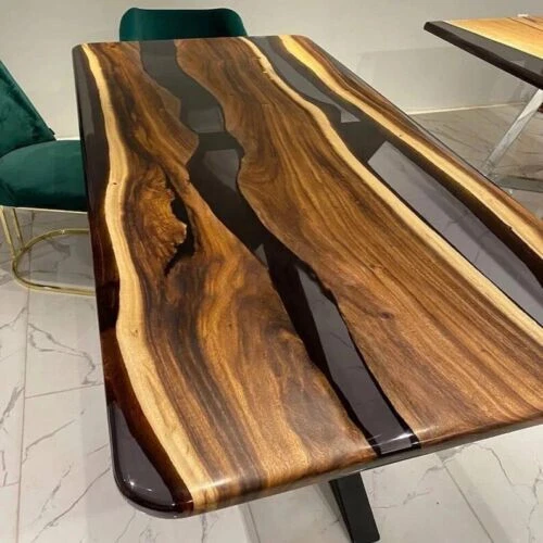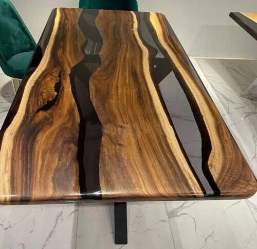 Mesa epoxi personalizada, mesa de resina de borde vivo, decoración natural de nogal hecha decoraciones
