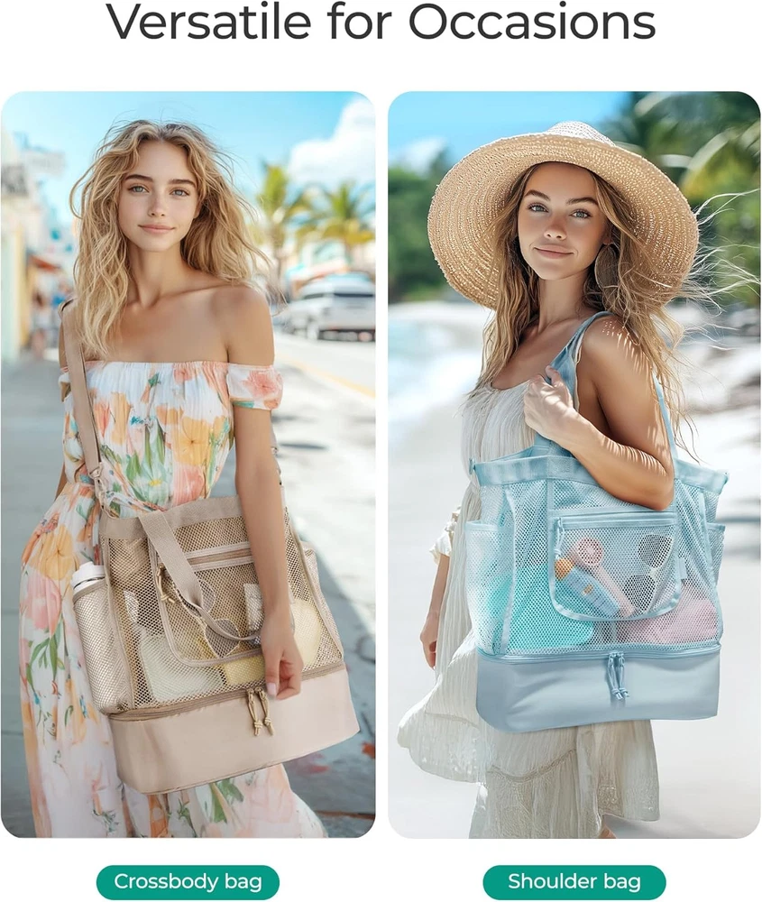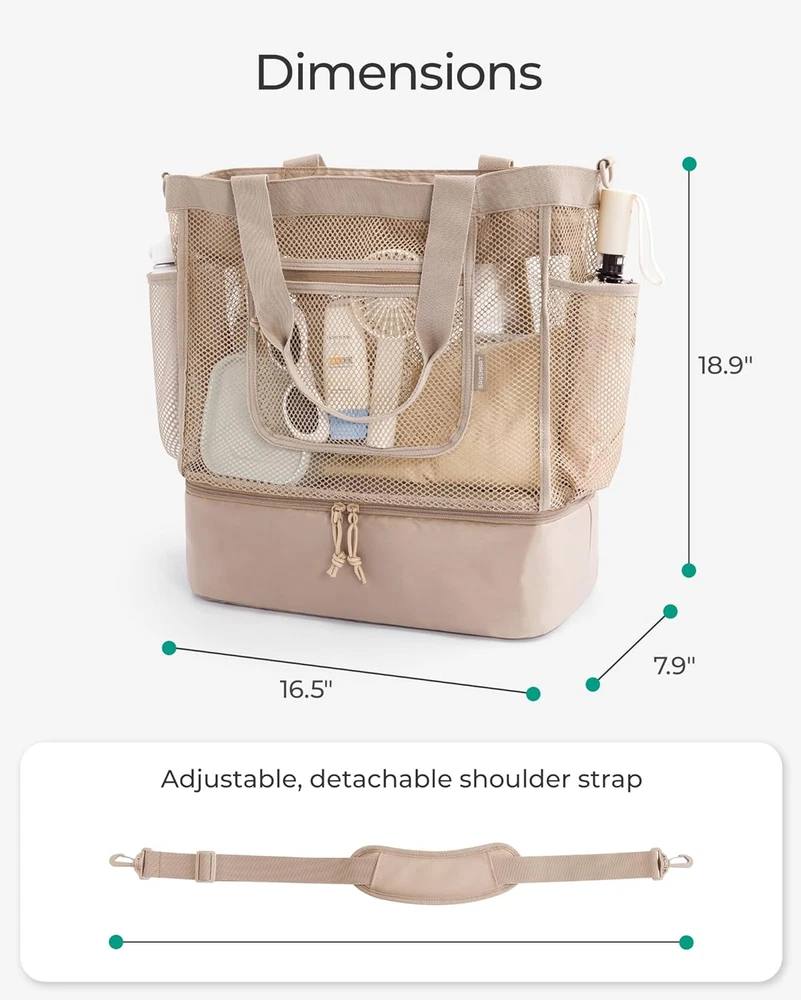 Product Description BAGSMART beach essentials Rubber tote bag Made of EVA, soft and washable Mesh tote bag Made of nylon, lightweight and Sandproof TPU tote bag Made of TPU, easy-cleaning Come with DIY accessories 2 sets of diy accessories with floral and ocean themes Bottom cooler bag Leakproof & Insulation Cooler Bag for beach time Touchscreen Phone Caddy with removable clear cell phone pouch The video showcases the product in use. The video guides you through product setup. The video compares multiple products. The video shows the product being unpacked. hero-video Merchant Video