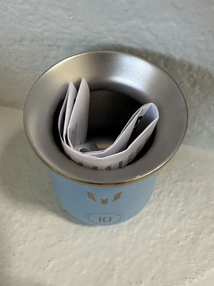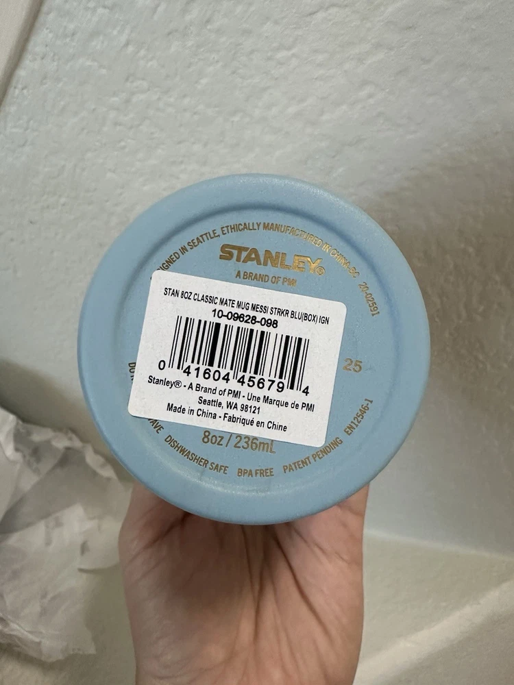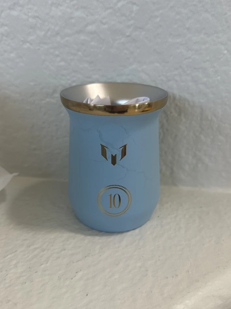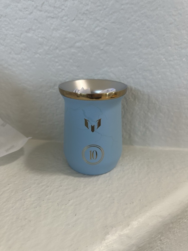 Start early. Stay late. This Messi x Stanley 1913 Collection in Striker Blue features an embossed lightning bolt that plays hard with its premium gold finish. The 8-ounce Classic Mate Mug features a traditional gourd shape and stainless steel construction. Double-wall vacuum insulation keeps your brew at the ideal temperature, so you can fuel your dedication on and off the pitch. Pair with the Mate Bombilla. Dimensions: 3.22 x 3.22 x 4.21 in.