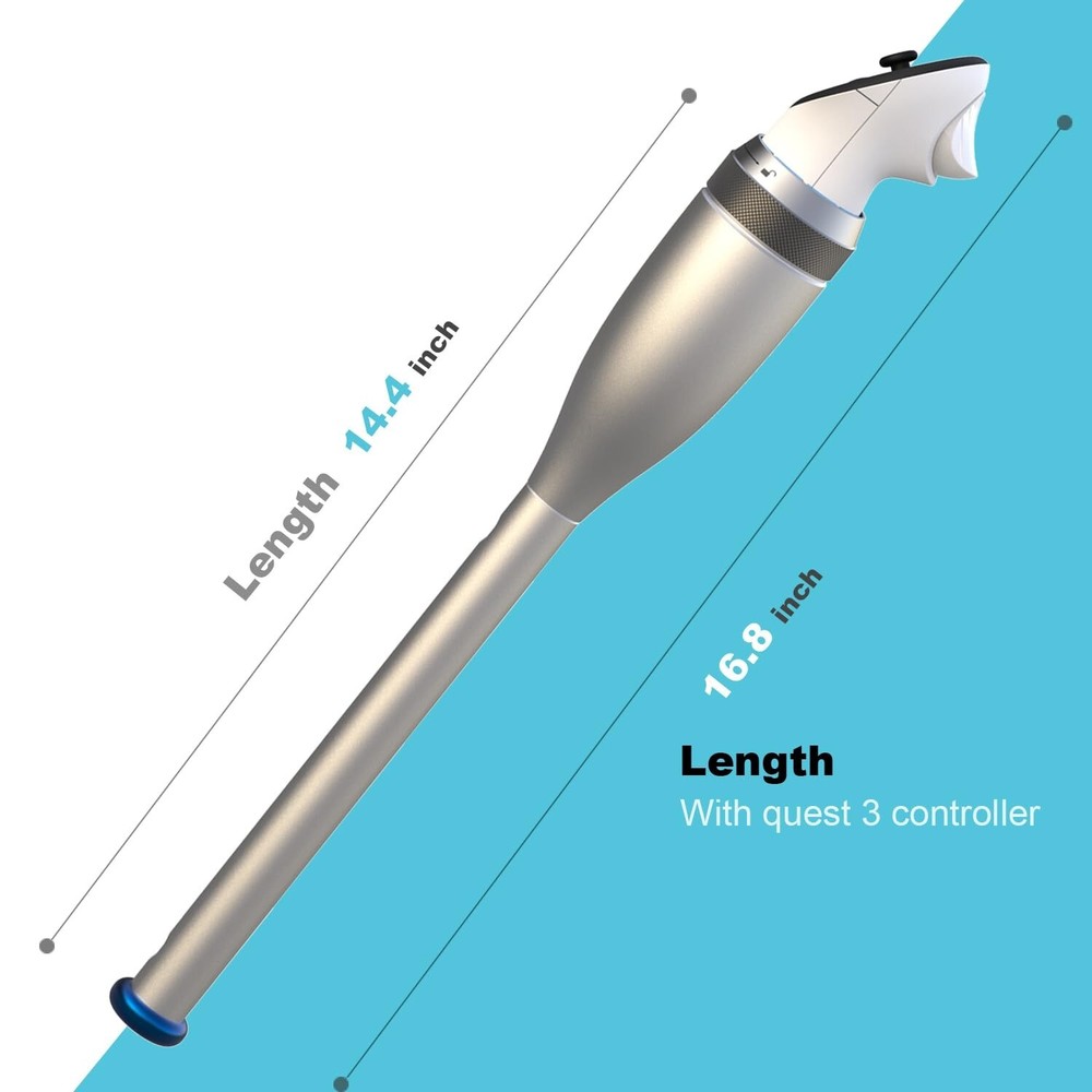 VR Baseball Bat Attachment for Meta Quest 3/ Quest 3S - Aluminum Short Baseball Bat Handle Accessory Compatible with Quest 3/3S/Pro for WIN Reality and Totally Baseball, iB Cricke IMMERSIVE: The YEZRO VR Baseball bat attachment is a baseball accessory that you can insert your Quest controller into to simulate a real Baseball bat. A SHORTENED BAT: Allows you to swing indoors more safely. The length of connect the controller is 16.7” length (Quest Controller is not included) Made of high quality aluminum for superior strength and perfect weight distribution. Built to be tough. Give you a balance feel with swing. VERSATILE: Combining this VR baseball bat attachment with baseball simulations like WIN Reality, Totally Baseball, iB Cricket will allow you to hit realistic pitches and train your plate discipline and timing at home! Compatible with Oculus (Meta) quest 3/2 & Pro. (Right or left controller) EASY TO INSTALL: Lock the controller by tighten the collar clockwise. Unlock the controller by whirl the collar counterclockwise. By default, WIN Reality places the virtual bat in your left Oculus controller, regardless of what side of the plate you hit. Because the virtual bat defaults to your left Oculus controller, you’ll want to strap your left Oculus controller to your bat.(NOTE: Before you begin to take swings inside VR, make sure you have a safe space to swing in.) SAFE: Locking mechanism holds the controller securely. Tie the controller lanyard to the handle for for double protection. The safety wrist strap prevents the bat from accidentally flying off your hands. Both these together safeguard the quest controllers from accidental damage and give you the freedom to play all your favorite shots with confidence.