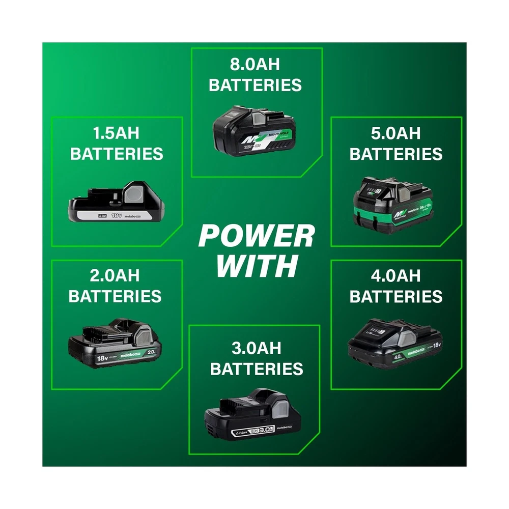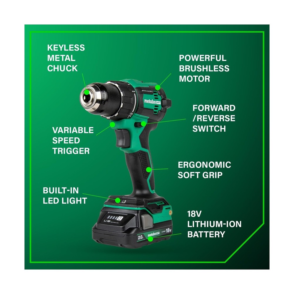 Metabo HPT 18V MultiVolt Cordless Brushless Driver Drill & Impact Driver Combo Kit, Power Tool Kit, 2 Lithium-Ion Metabo HPT Batteries and Charger, High Torque, Compact Lightweight Design, KC18DEXQB Description INTRODUCING THE METABO HPT 18V MULTIVOLT™ CORDLESS BRUSHLESS DRIVER DRILL & IMPACT DRIVER COMBO KITThe Metabo HPT 18V MultiVolt™ Cordless Brushless Driver Drill & Impact Driver Combo Kit is a must-have for contractors, homeowners, and DIY enthusiasts. This kit includes two high-performance power tools—the 18V Brushless Driver Drill and 18V Power Impact Driver—delivering up to 620 in-lbs and 1,549 in-lbs of turning torque respectively. This combo kit is backed by Metabo HPT's Lifetime Tool Body, 2-Year Battery, and 1-Year Charger Warranty.HIGH-PERFORMANCE TOOLS FOR VERSATILE APPLICATIONSThe Driver Drill and Impact Driver in this combo kit are powered by advanced Brushless Motor Technology, ensuring longer run time, increased power, and extended durability. Both tools feature LED lights to illuminate dark workspaces. The Driver Drill also features Reactive Force Control for added safety. Despite their power, both tools are lightweight and compact, making them easy to handle and ideal for tight spaces.COMPLETE COMBO KIT FOR EXTENDED RUN TIMEThis combo kit includes everything you need for extended operation: (1) 18V Brushless Driver Drill, (1) 18V Power Impact Driver, (2) 2.0Ah 18V Metabo HPT batteries with charge indicators, and (1) Quick charger. (1) 2 Phillips Bit, and (1) Carrying Bag. The batteries are compatible with 18V and 18V/36V MultiVolt tools, ensuring extended use across multiple tools.CHOOSE METABO HPT FOR PROFESSIONAL-GRADE RELIABILITYMetabo HPT power tools are engineered for durability, safety, and performance. With a legacy of quality craftsmanship, Metabo HPT tools are trusted by professionals and DIY enthusiasts alike. Discover our full range of innovative tools and accessories at the Metabo HPT store. Features: HIGH PERFORMANCE POWER TOOLS: This combo kit includes the 18V Brushless 1/2" Driver Drill (DS18DEX) and 18V Power Impact Driver (WH18DEX), delivering up to 620 in-lbs and 1,549 in-lbs of turning torque respectively. Ideal for contractors, homeowners, and DIY. BRUSHLESS MOTOR TECHNOLOGY: Ensures more run time, increased power, and extended durability. Each tool features a LED light to illuminate dark workspaces, and the Cordless 1/2" Driver Drill features Reactive Force Control (RFC) for added safety. LIGHTWEIGHT AND COMPACT: Both the 1/2" Driver Drill and Impact Driver tools are under 3 lbs (without battery) and compact (Driver Drill is 6.1" in length and Impact Driver is 4.72" in length), reducing user fatigue and allowing access to tight spaces. LONGER RUNTIME WITH METABO HPT BATTERY: The kit includes 2x 2.0Ah 18V Metabo battery with charge indicators for extended run time. The batteries are compatible with 18V and 18V/36V MultiVolt tools, doubling your runtime for up to 8.0Ah per charge. CHOOSE METABO HPT FOR QUALITY AND RELIABILITY: This Driver Drill & Impact Driver Combo Kit is backed by Metabo HPT's Lifetime Tool Body, 2-Year Battery, and 1-Year Charger Warranty. Get more durable power tools at the Metabo HPT store. Product Details: Brand: Metabo HPT Voltage: 18 Volts Battery Cell Composition: Lithium Ion Number of Batteries: 2 Lithium Ion batteries required. (included) Item Torque: 1549 Inch Pounds Amperage: 2 Amps Included Components: 18V Brushless Driver Drill (DS18DEX), Impact (WH18DEX), 2 Lithium-Ion Batteries with charge indicators, 1 Charger, Phillips bit, and Carrying bag Unit Count: 1.0 Count Power Source: Battery Powered UPC: 717709029262 Manufacturer: Koki Holdings America, Ltd Part Number: KC18DEXQBM Item Weight: 10.38 pounds Product Dimensions: 6.18 x 3.35 x 8.5 inches Item model number: KC18DEXQB Batteries: 2 Lithium Ion batteries required. (included) Style: KC18DEXQB Only Finish: Brushed Material: Blend Pattern: Solid Shape: Rectangular Item Package Quantity: 1 Batteries Included?: Yes Batteries Required?: Yes Warranty Description: 1 Year Charger, 2 Year Battery Date First Available: February 13, 2023 Delivery We Do Not Ship Outside of the Continental US. Return Policy All items qualify for returns within 30 days of receipt. Seller is responsible for return shipping on any item that is not damaged. Feedback We take our reputation seriously, we buy and sell online, so we understand the value of trust. If you are unsatisfied with your order, please contact us and we will work with you to resolve it to your satisfaction.