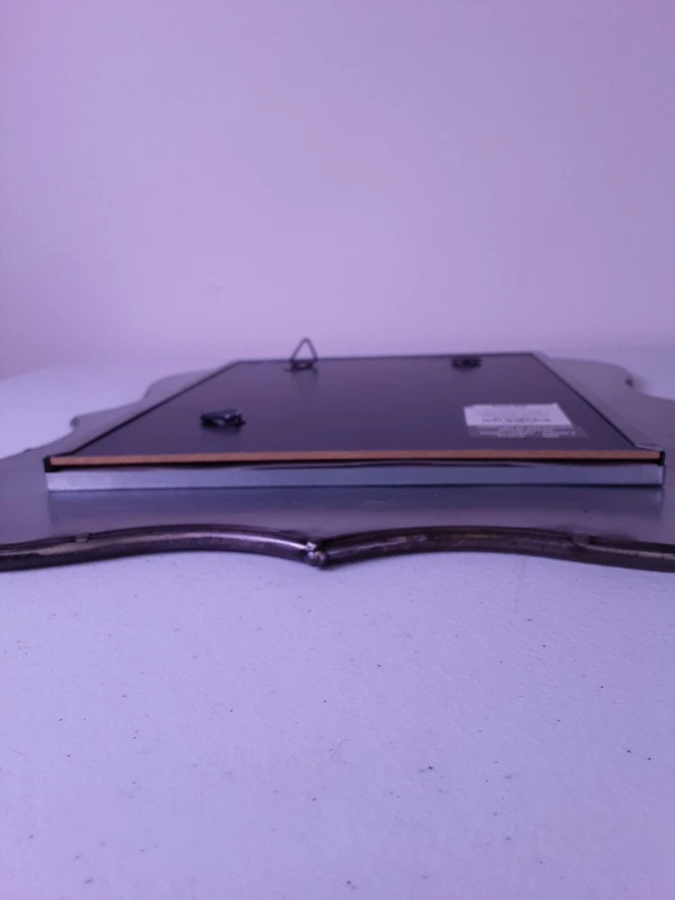 This metal picture frame is perfect for displaying your favorite 8 x 10 photos. The decorative edging and rustic/primitive style make it a great addition to any home decor. The frame is suitable for all occasions and can hold one photo, which can be loaded rearwards. It has a rectangular shape and measures approximately 12 x 17 inches (A3). The picture frame is made of gray matte finish metal and has a box frame depth of 0.5 inches. It is designed for portrait orientation and can be hung on the wall. The frame is produced in China by Hobby Lobby. Get this photo frame to showcase your memorable moments.