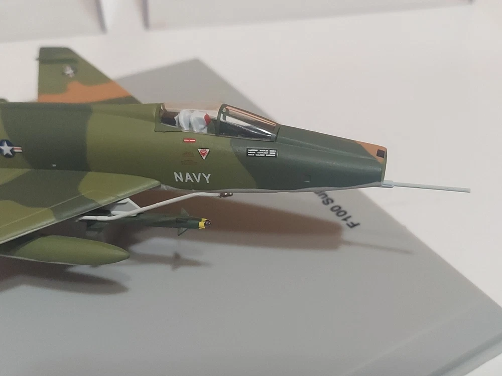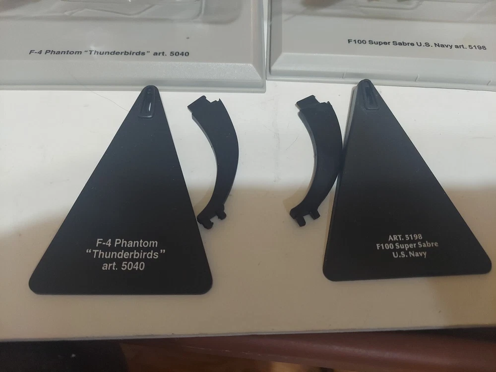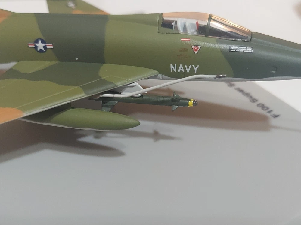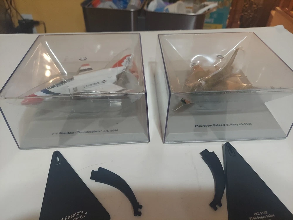 Up for bid are the 2 Metal Armour 1:100 scale planes seen in the photos. 1. F100 Super Saber U.S. Navy No. 5198 2. F-4 Phantom "Thunderbirds" No. 5040 Both have never been displayed outside of the case. The planes are in great condition. The plastic outer cases do have some scratches and surface wear. Both have the stands. Nice for collectors to display. Questions, please ask. Thanks!