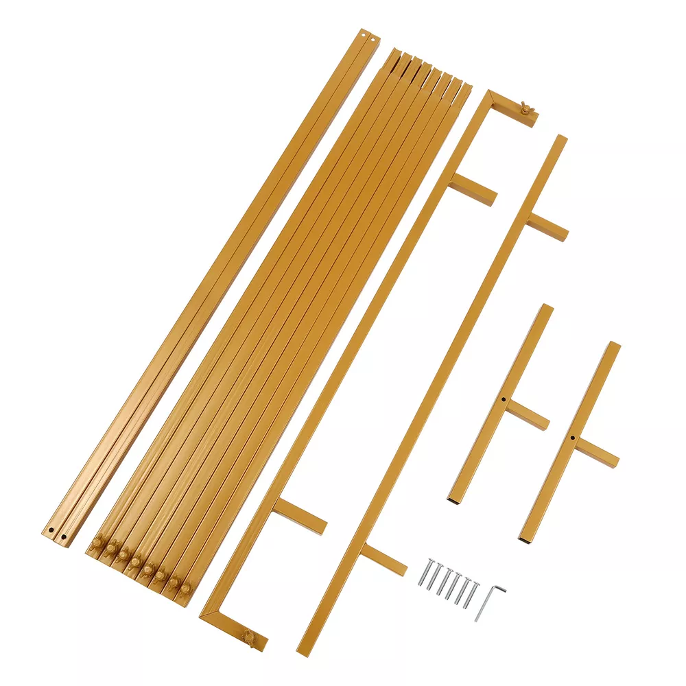 Specification Material: Iron Process: High-temperature Baking Paint Style: Modern Color: Golden Shape: Rectangle Assembly Required: Yes Mount Type: Free Standing Load-bearing Capacity: About 7-8kg/15.4-17.6 lbs Net Weight: 6.65kg/14.7lbs Gross Weight: 7kg/15.4lbs Square Tube Size(L*W): 20*20mm/0.79*0.79in Iron Tube Thickness: 1mm/0.04in Product Size: 1*0.4*2m/3.38*1.31*6.56ft Package Size: 110*23*7cm/43.3*9.1*2.8in Package Included 1* Metal Backdrop Stand All Accessories for Installation Balloon Wedding Backdrop Stand Metal Balloon Frame Stand For Weddings Parties Description If you want to hold a beautiful and romantic wedding, graduation ceremony, or birthday party, then this metal backdrop stand can come in handy. It is made of high-quality iron with a high-temperature baking paint process on the surface, which is sturdy and durable. Moreover, it has a fashionable appearance and is easy to install. You can place it indoors or outdoors. Having it will make your wedding even more brilliant. Key Features Build to Last: Made of iron with a high-temperature baking paint process , this product is not easy to rust, ensuring durability and longevity. Strong Stability: The thickened iron tube (thickness: 1mm), stable rectangular base, and strong screw fixation provide it with an excellent load-bearing capacity (15.4-17.6 lbs), so you don't need to worry about it tipping over on important occasions as long as you put it on a flat surface. Plant Stand: You can place it in the area where climbing plants are planted, which will help the plant grow. The lush plants surrounding it will form a beautiful landscape to decorate your garden well. Great Background: The appropriate height of 6.56ft makes it a striking background for photography, which can make the photos more exquisite. Elegant Appearance: The glossy surface , golden tone, and rectangular frame give this product an elegant appearance, providing a beautiful background for your wedding or party. The Fun of DIY : On different occasions, yo u can decorate the backup stand with balloons, garlands, tulle swags, and string lights, and its style depends on your preferences and ideas. Easy to C arry and Store: The stand can be disassembled after use, so it can be placed in the locker or room at will and is also very convenient to carry. Simple Installation : The simple structure and complete accessories ensure that you can complete the installation and start using it in a short time. Easy to Clean: The smooth surface and simple structure allow you to simply wipe it clean with a towel when dust accumulates on the surface. Ideal Gift: This practical product will surprise your friends who need to hold weddings or parties, bringing them better decorative effects. Guaranteed Customer Service : We aim to provide quality products and services. If you have problems, please feel free to contact us. We will reply and solve the problem for you as soon as possible. Details Rounded Corners: Round edges and corners provide a comfortable touch to better care for your skin. Wing Nuts: They are convenient for you to tighten the item by hand, making it less likely to wobble or sway. Application It is suitable for weddings, birthday parties, Christmas parties, happy Valentine’s Day decorations, banquets, anniversary celebrations, school opening ceremonies, graduation party decorations, candy buffets, dessert tables, bachelor parties, photo booth background decorations, store openings, baby showers, graduation parties, and other special events that you want to decorate. Specification Material: Iron Process: High-temperature Baking Paint Style: Modern Color: G olden Shape: Rectangle Assembly Required: Yes Mount Type: Free Standing Load-bearing Capacity : About 7-8kg/15.4-17.6 lbs Net Weight: 6.65kg/14.7lbs Gross Weight: 7kg/15.4lbs Square Tube Size(L*W): 20*20mm/0.79*0.79in Iron Tube Thickness: 1mm/0.04in Product Size: 1*0.4*2m/ 3.38*1.31*6.56ft Package Size: 110*23*7cm/43.3*9.1*2.8in Package Included 1* Metal Backdrop Stand All Accessories for Installation Notes Please note that flowers and other decorations are not included. Please note that children are not allowed to climb on this stand. It's essential to ensure that the stand is set up on a stable and level surface to prevent any accidents or mishaps. Please allow the slight color difference caused by the shooting light and 1-3cm error due to manual measurement and make sure you do not mind before ordering. Payment Delivery details Terms of sales About us Contact us Payment We accept ebay payment 。 Fees such as import duties, taxes are not included in the item price or shipping costs. These charges are the buyer's responsibility. Delivery details Shipping: 2-9 working days to: USA Terms of sales We maintain high standards of excellence and strive for hundred percent customer satisfaction. Feedback is very important to us. We hope that you contact us immediately before you give neutral or negative feedback, so that we can address your concerns. It is impossible to address issues if we do not know about them! About us Your satis faction is our ultimate goal. We work hard to earn your trust and future business. Our certified technicians have tested each item before shipping. The unit comes with 1 year limited warranty on all manufacturing defects. a) If you receive a defective item, you may return it or ask for a discount. Please contact us within 14 days after you receive the package. b) What you returned must be intact and in its original packaging as re? u. Customer is responsible for shipping costs of the returned item. c) We will cover the cost of shipping back t with the shipping rate indicated in the registration page. We will send you a new unit or refund the full payment you paid. Thank you. Contact us Business Hour Business Hour: Monday To Friday: 8:30 AM to 5:00 PM (Beijing China time) Due to time zones, our reply to your questions may not be immediately. But within above working time, we will reply yo
