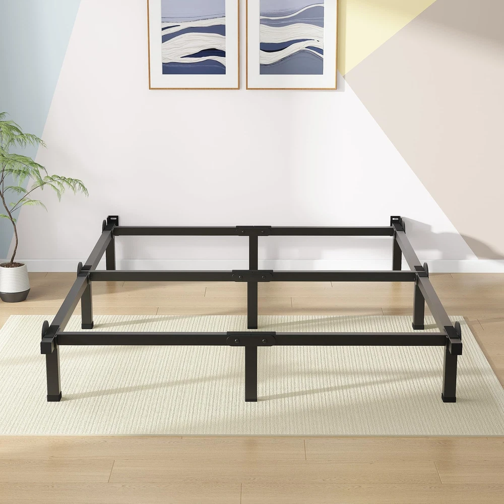 This bed frame bracket is new upgraded to fits most supporting needs for box spring and mattress sets. It is made with strong and dependable steel; and the center support beam can hold your bed box springs & mattress stably and safely. And the headboards holes are ready for you to attach the headboards you like. The foldable brackets of the bed platform makes its assembly and disassemble easier and simpler. We aim to provide exceptional products to our friends on , any suggestions about our products and services are welcome! Box Spring or Bunkie Board required. STURDY SUPPORT - The bed platform base made of solid steel construction provides a stable support for your box spring & mattress; multiple legs and a center beam promise you a long-life use. HEADBOARD COMPATIBLE - This bed frame brackets are designed with 2 slots to attach the bed headboards, you can choice the headboards to match as you like. STORAGE CLEARANCE - 8 inch high legs leave you a somehow under-bed storage space to put your traveling luggage, cartons or little stuffs. EASY ASSEMBLY - All tools and instructions are included for setup. It takes time under 30 minutes. PACKAGE INCLUDES - ONLY the bed frames and accessory needed; a box spring and mattress (NOT included) set is required while using this bed support brackets.