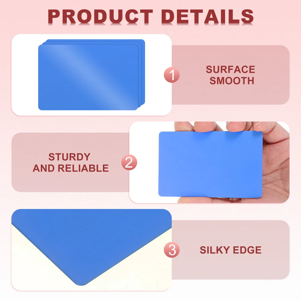 Document What is this?Elevate your networking game with our Good-Quality Blank Metal Business Cards. Crafted from sturdy stainless steel, these cards not only look impressive but also provide durability for everyday use.What will I get?Overall Size: 86 x 54 x 0.8mm / 3.39 x 2.13 x 0.03 inchSmall Cable Ties Size: 200 x 12mm / 7.87 x 0.47 inchLarge Cable Ties Size: 300 x 12mm / 11.81 x 0.47 inchColor: Dark BlueIn the package of: 100 Pcs Blank Metal Business Cards & 10 Pcs Small Cable Ties & 10 Pcs Large Cable TiesIs there any advantages of the product?Made from stainless steel, our blank metal business cards are designed to withstand wear and tear, ensuring a lasting impression. The modern, minimalist design offers a sophisticated look.How to use it?Suitable for engraving, stamping, or printing, our blank cards allow you to showcase your unique brand identity. Perfect for networking events, conferences, or as personal calling cards. Stand out from the crowd with an amazing card.What should I notice?Please check the size before you choose our product. Metal Business Card 3.39 x 2.13 Inch Blank Aluminum Dark Blue 100 Pcs What is this? Elevate your networking game with our Good-Quality Blank Metal Business Cards. Crafted from sturdy stainless steel, these cards not only look impressive but also provide durability for everyday use. What will I get? Overall Size: 86 x 54 x 0.8mm / 3.39 x 2.13 x 0.03 inch Small Cable Ties Size: 200 x 12mm / 7.87 x 0.47 inch Large Cable Ties Size: 300 x 12mm / 11.81 x 0.47 inch Color: Dark Blue In the package of: 100 Pcs Blank Metal Business Cards & 10 Pcs Small Cable Ties & 10 Pcs Large Cable Ties Is there any advantages of the product? Made from stainless steel, our blank metal business cards are designed to withstand wear and tear, ensuring a lasting impression. The modern, minimalist design offers a sophisticated look. How to use it? Suitable for engraving, stamping, or printing, our blank cards allow you to showcase your unique brand identity. Perfect for networking events, conferences, or as personal calling cards. Stand out from the crowd with an amazing card. What should I notice? Please check the size before you choose our product. Hot Item Payment 1.We accept eBay payment . 2.Payment must be received within 7 business days of auction closing. Shipping 1.We ship to your eBay or Paypal address. Please make sure your eBay and Paypal address is correct before you pay. 2.Items will be shipped within 1-3 business day when we received payment. 3.Delivery time depends on destination and other factors. Description Policy Metal Business Card 3.39 x 2.13 Inch Blank Aluminum Dark Blue 100 Pcs What is this? Elevate your networking game with our Good-Quality Blank Metal Business Cards. Crafted from sturdy stainless steel, these cards not only look impressive but also provide durability for everyday use. What will I get? Overall Size: 86 x 54 x 0.8mm / 3.39 x 2.13 x 0.03 inch Small Cable Ties Size: 200 x 12mm / 7.87 x 0.47 inch Large Cable Ties Size: 300 x 12mm / 11.81 x 0.47 inch Color: Dark Blue In the package of: 100 Pcs Blank Metal Business Cards & 10 Pcs Small Cable Ties & 10 Pcs Large Cable Ties Is there any advantages of the product? Made from stainless steel, our blank metal business cards are designed to withstand wear and tear, ensuring a lasting impression. The modern, minimalist design offers a sophisticated look. How to use it? Suitable for engraving, stamping, or printing, our blank cards allow you to showcase your unique brand identity. Perfect for networking events, conferences, or as personal calling cards. Stand out from the crowd with an amazing card. What should I notice? Please check the size before you choose our product. Hot Item Payment 1.We accept eBay payment . 2.Payment must be received within 7 business days of auction closing. Shipping 1.We ship to your eBay or Paypal address. Please make sure your eBay and Paypal address is correct before you pay. 2.Items will be shipped within 1-3 business day when we received payment. 3.Delivery time depends on destination and other factors.