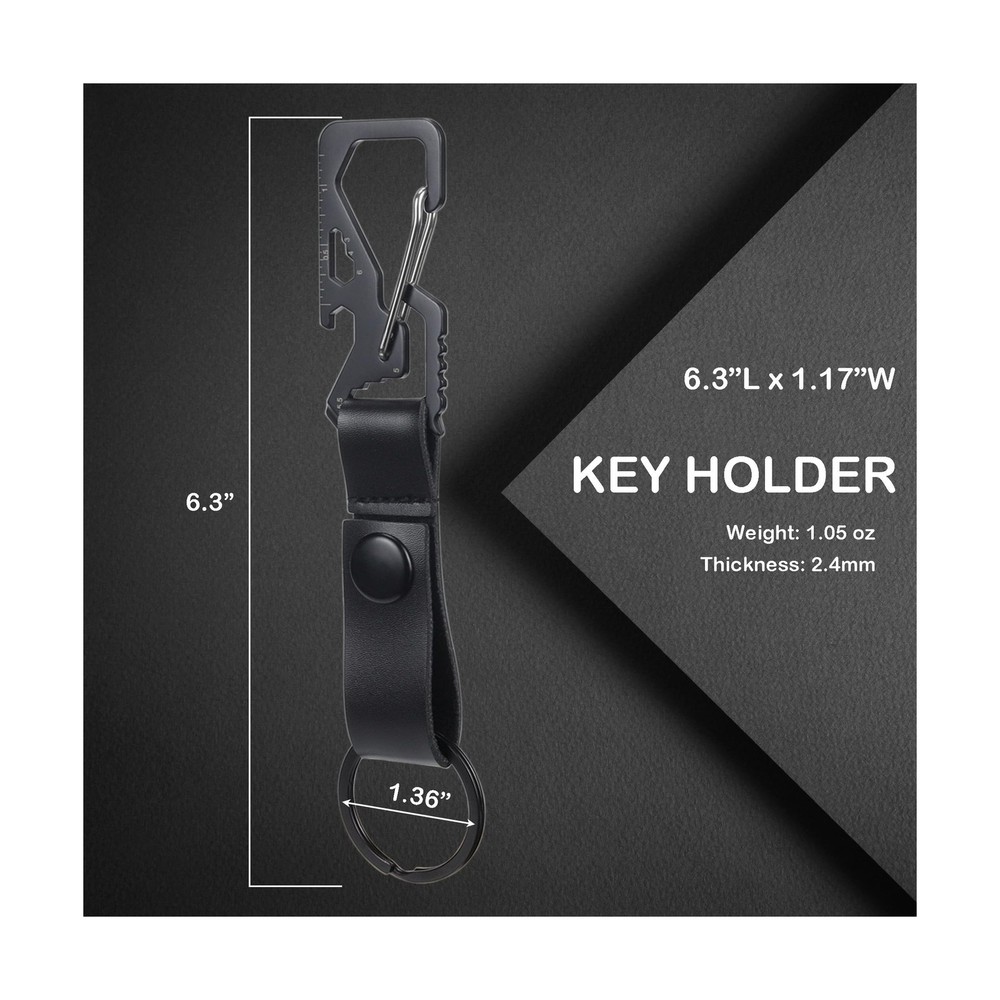 Metal Car Key Fob Clip Carabiner Keychain Rings Leather Belt Loops Holder - Black Description Demearly Stainless Steel Key Keeper – Organize, Secure, and Simplify Your Daily Carry Ergonomic Design for All-Day Comfort Crafted with user comfort in mind, this key organizer boasts a low-profile, 6.2-inch length and 1.17-inch width that sits discreetly on belts, backpacks, or gear straps. The quick- release metal snap closure enables one-handed access to your keys, perfect for busy professionals, outdoor adventurers, or parents juggling daily tasks. Its lightweight yet rugged stainless steel frame ensures it won’t weigh you down, even during active use. Secure Attachment Security is paramount, and the Demearly Key Keeper excels with its high-strength metal snap closure. The snap firmly locks onto the leather loop, preventing slippage even during vigorous movement. For added versatility, the included silver split key ring lets you attach smaller items like USB drives or loyalty cards, keeping all essentials in one place. Who Needs This? Professionals: Keep office, car, and home keys organized during commutes or business trips. Outdoor Enthusiasts: Secure keys during hikes, cycling, or camping without bulk. Daily Commuters: Eliminate pocket clutter and noise while traveling. Minimalists: Streamline your carry with a sleek, functional design. Package Includes 1 x Black Stainless Steel Keychain Clip 1 x Black Leather Loop with Metal Snap Closure 1 x Black Split Key Ring Features: Key Rings ClipsBlack keychain holder withstands daily wear from auto shops to camping trips. Holds up to 15 keys without bending - perfect for truck owners and DIY needing reliable key organizers clip. Multi-functional Key Ring HolderSecurely organize car key fobs, house keys, garage remotes and tools in one place. Compact design fits perfectly in jeans pockets or work gloves compartments. detachable flat split ring for separating office keys during weekends. Key Management Designed with a 1.36" split ring and adjustable leather belt loop strap to accommodate multiple essential keys. Keeper your home, vehicle, and workplace keys neatly organized while preventing jingling noises and pocket bulk. Ergonomic Daily CarryMeasuring 6.2" L x 1.17" W with a low-profile design that sits comfortably on belts, backpacks, bags, or tactical gear straps. The quick-release functionality allows instant access while maintaining secure storage. Versatile PracticalityIdeal for professionals, outdoor enthusiasts, and daily commuters. Weather-resistant construction performs reliably in various environments from urban settings to worksites, ensuring keys remain accessible and protected. Product Details: Color: Black Material: Stainless Steel, Leather, Metal Theme: Sports, Home, Car, Backpacks, Bags Special Feature: Lightweight, Extendable, Quick Release, Stainless Steel Key Keeper Included Components: 1 x Black Keychain Clip, 1 x Black Leather Loop with Metal Snap Closure, 1 x Black Split Key Ring Closure Type: Carabiner, Snap Hook Brand: Demearly Item dimensions L x W x H: 2 x 1 x 1 inches Number of Pieces: 1 Style: Modern, Multi-functional, Multitools Product Dimensions: 2 x 1 x 1 inches Item Weight: 1.44 ounces Department: mens Manufacturer: Demearly Country of Origin: China Batteries required: No Import: Imported Delivery We Do Not Ship Outside of the Continental US. Return Policy All items qualify for returns within 30 days of receipt. Buyer is responsible for return shipping on any item that is not damaged. Feedback We take our reputation seriously, we buy and sell online, so we understand the value of trust. If you are unsatisfied with your order, please contact us and we will work with you to resolve it to your satisfaction.