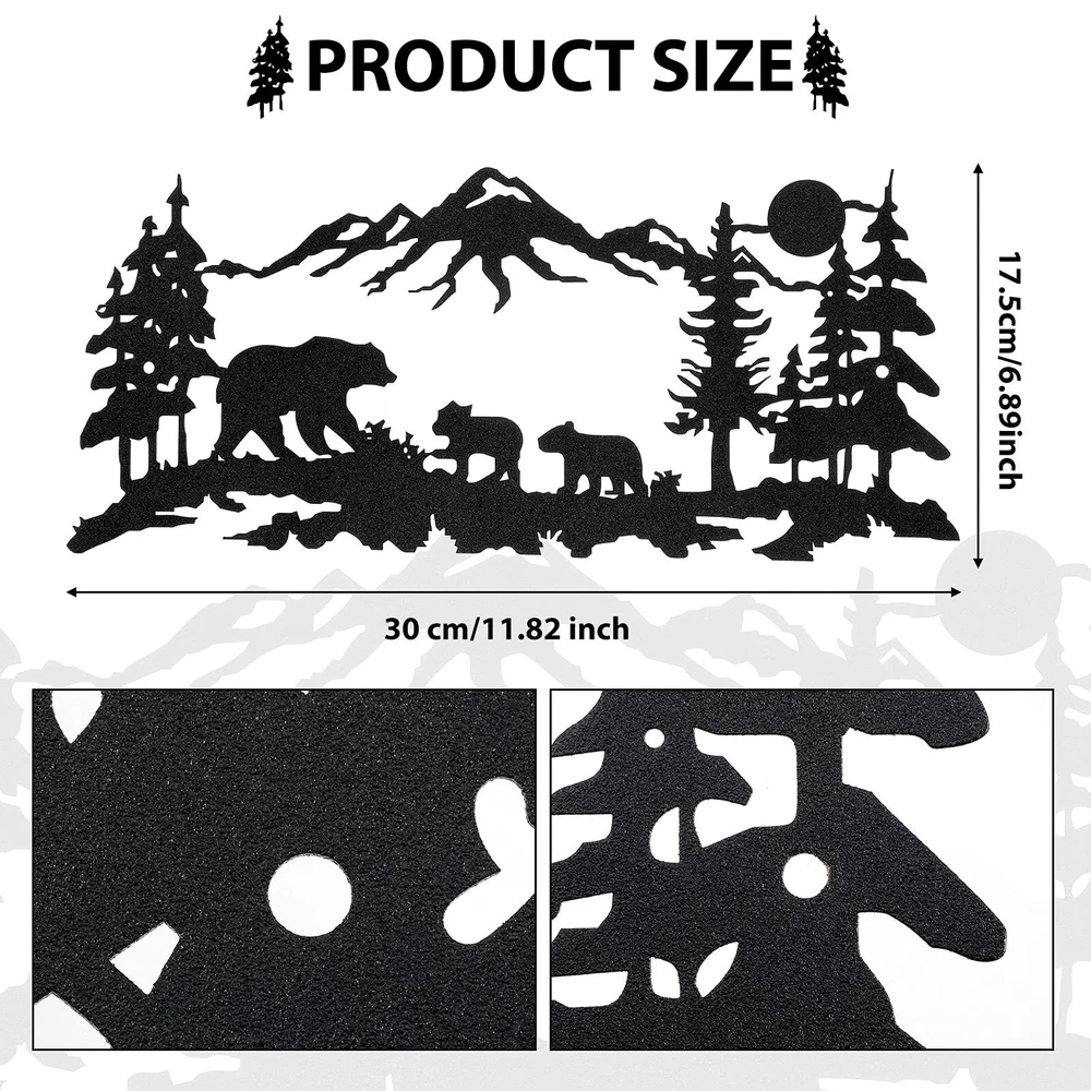 Features: Wide applications: The monogram metal sign can be extensively applied for indoors and outdoors, such as home, restaurant, hotel, living room, yard, garden, balcony or other places, also you can adorn it on the wall, door, shelf, window and more. More usages are waiting for you to explore. Classic style: The hanging outdoor metal sign featured with black, classic and simple, easy for you to well match with other home decorations, even can keep consistent with your room style, the first choice for you to renovate your house, bringing you a refresh feeling. Specifications: Material: metal Color: black Size: about 30 x 17.5 cm/ 11.8 x 6.9 inches Package includes: 1 x Metal wall decor Notes: Manual measurement, please allow slight errors on size. The color may exist slight difference due to different screen displays. The nail is not included in the package, please kindly note. Exquisite design: our metal sign for outdoors is designed around animals in the forest, like bear, and adding forest, pine tree, mountains and more, vivid and lifelike, black metal sign gives people classic and elegant feeling Suitable size: the primitive bathroom wall art measures approx. 30 x 17.5 cm/ 11.8 x 6.9 inches, proper size for you to nicely decorate your living room, bedroom, study room, making your home look more charming, and showing your artistic taste to your guests Quality and lasting: the metal sign is made of wearable metal material, fine workmanship and painting make it keep glossy for a long time, not easy to rust or fade over time, please get assured to use in daily life How to install: there are 2 holes on the surface of the forest wall decor, you can directly hang it on the wall with nails (not included), or decorate it in other places that you want, not easy to fall or swing, because it can fit tightly to the wall and does not bulge Nice gift: the bear metal sign decor is very cute and meaningful, very suitable for you to send your friends, newlywed, families, neighbors or colleagues as a birthday gift or housewarming gift; They will be happy to receive such a chic gift