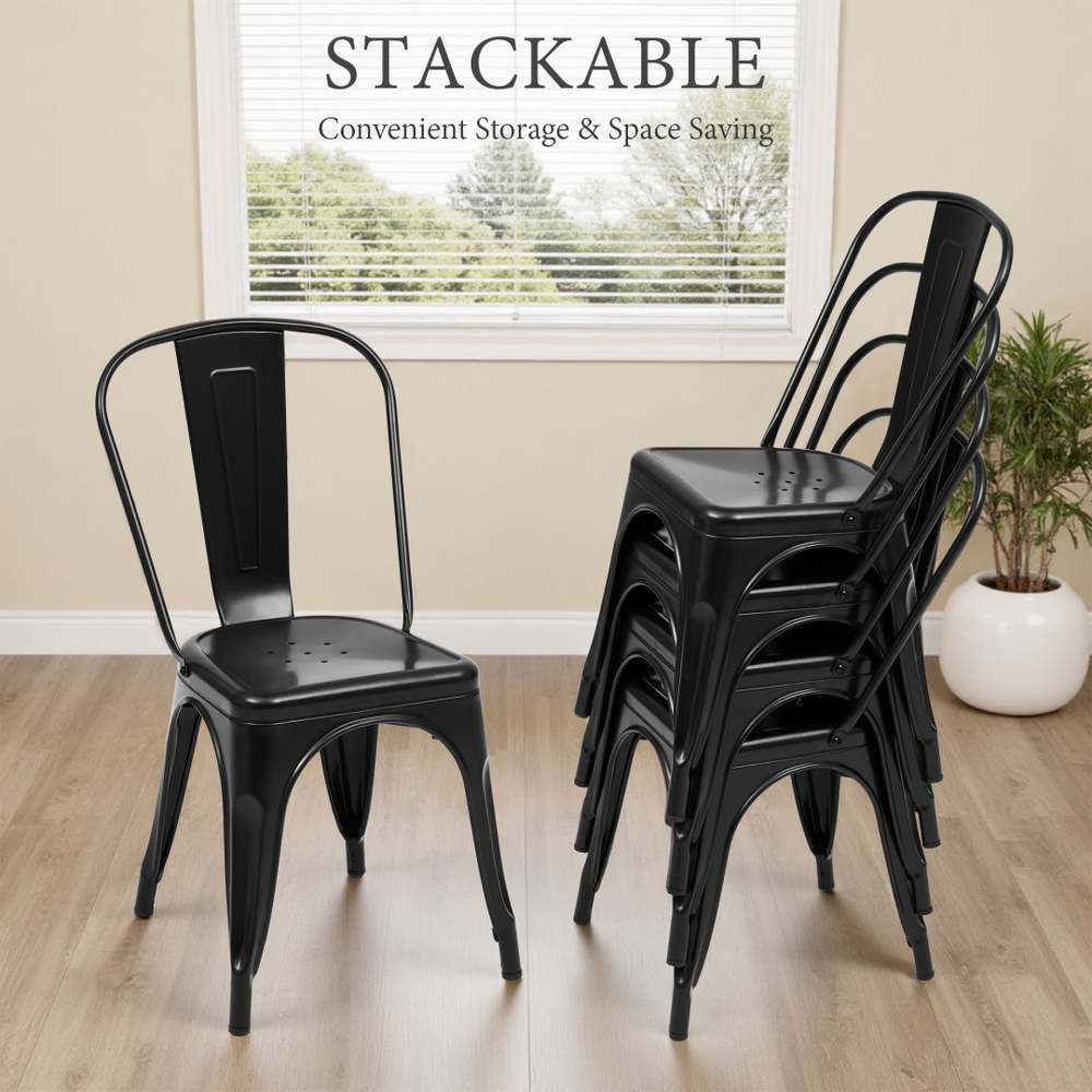 Metal Dining Chairs Set Of 4, Stackable Industrial Style Chairs For Kitchen Dini