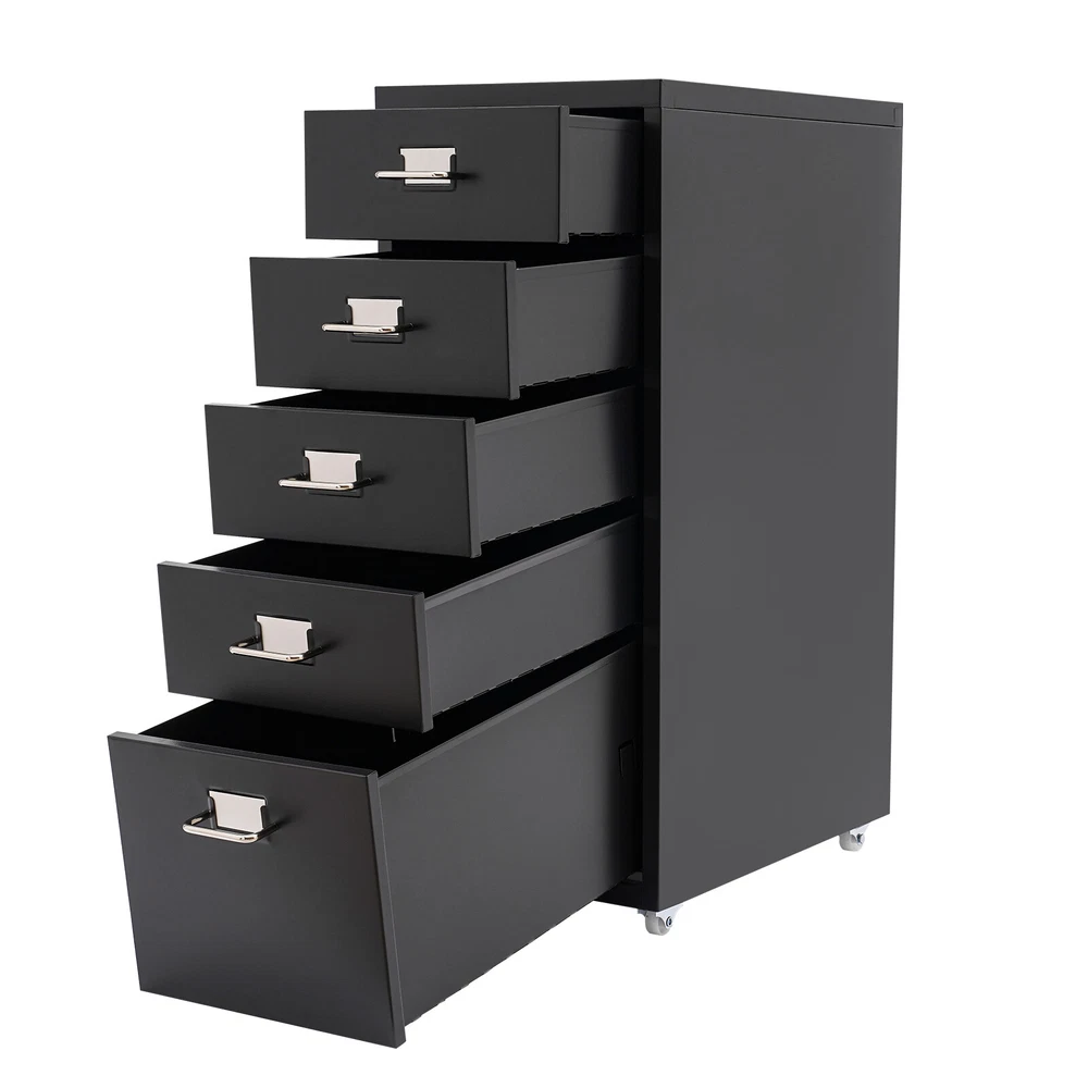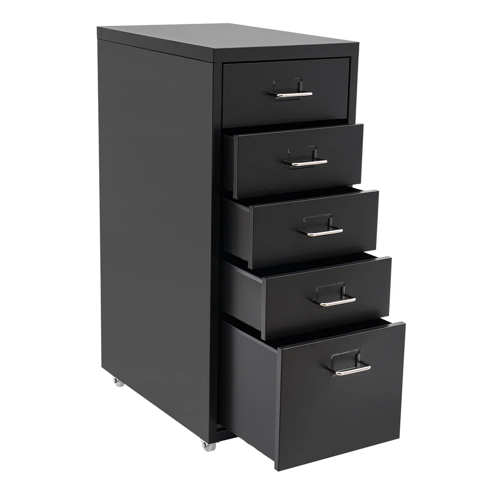 Application It can be placed in the kitchen, bedroom, living room, office, study, and more to store snacks, stamps, sticky notes, paper clips, scissors, bills, pens, pencils, business cards, notepads, cosmetic collections, toiletries, jewelry, hair accessories, crafts, etc. Specification Color: Black Style: Modern Shape: Rectangular Number of Drawers: 5 Assembly Required: Yes Installation Type: Free Standing Process: Electrostatic Spraying Material: Cold Rolled Steel, Aluminum Alloy, Rubber Each Tier Max. Load Capacity: About 5kg/11.02lbs Product Size: 28*41*69cm/11*16.1*27.1in Large Drawer Size: 40*24.5*19cm/15.7*9.6*7.5in Small Drawer Size: 40*24.5*9cm/15.7*9.6*3.5in Drawer Internal Area: 38.5*23cm/15.1*9in Package Included 1* 5-Drawer Storage Cabinet Metal File Storage Cabinet Storage Cabinet with 5 Drawers Drawer Storage Cabinet Description Maintaining cleanliness and order in our lives can have a positive impact on our mood and overall well-being. Our storage cabinet is crafted with high-quality cold-rolled steel and aluminum alloy , providing ample storage space while boasting a beautiful and functional design. With this cabinet, you can effortlessly and efficiently organize your belongings, leaving you feeling structured and at ease. Come and take it to enjoy a tidy life. Key Features Sturdy and Durable: This product is mainly made of high-quality cold-rolled steel and aluminum alloy, with electrostatic spraying treatment, it is not easy to rust, corrode, deform, or fade. Excellent Organizer: This set of 4 small drawers and a large drawer can sort and store data cables, kinds of files, and other daily essentials to create a cleaner, tidier office and home environment. Improve Space Utilization: This product occupies an area of 11*16.1 inches, so it can be placed in relatively narrow spaces, such as the gap between the bookshelf and the wall, making full use of your house space. Easy to Access: The tag slot on each drawer allows you to conveniently label and sort items in each drawer, which also ensures easy access to your items. Minimalist Style: The black color scheme combines a rectangular shape and simple lines to create a minimalist aesthetic and reveal a strong modern charm, adding a touch of refinement to your office . Stable Construction: The thickened material and rectangular structure give it excellent stability and a load capacity of about 11.02 pounds each tier , meeting your needs for storing various items without tipping o ver. Effortless Clean: Thanks to its smooth surface and simple construction, you can wipe it clean with a damp rag. Ideal Gift: Thanks to its practicality, it will make a fine gift for family, friends, and loved ones on Christmas, Father's Day, Mother's Day, birthdays, anniversaries, and holidays. Protective Package: To prevent the product from being damaged during transportation, we packed it with foam to protect your products to the maximum extent possible. Details Smooth Handles: It helps you open and close the drawer conveniently while conforming to the design of the cabinet. Durable Buckles: The drawers have anti-falling and anti-sinking buckles on both sides of the tail, which can prevent the drawers from sinking, tilting, or falling. Rubber Wheels: They allow for easy movement of this product while avoiding scratching the floor and generating noise. Application It can be placed in the kitchen, bedroom, living room, office, study, and more to store snacks, stamps, sticky notes, paper clips, scissors, bills, pens, pencils, business cards, notepads, cosmetic collections, toiletries, jewelry, hair accessories, crafts, etc. Specification Color: Black Style: Modern Shape: Rectangular Number of Drawers: 5 Assembly Required: Yes Installation Type: Free Standing Process: Electrostatic Spraying Material: Cold Rolled Steel, Aluminum Alloy, Rubber Each Tier Max. Load Capacity: About 5kg/11.02lbs Product Size: 28*41*69cm/11*16.1*27.1in Large Drawer Size: 40*24.5*19cm/15.7*9.6*7.5in Small Drawer Size: 40*24.5*9cm/15.7*9.6*3.5in Drawer Internal Area: 38.5*23cm/15.1*9in Package Included 1* 5-Drawer Storage Cabinet Other Accessories for Assembly Notes Please allow the slight color difference caused by the shooting light and 1-3cm error due to manual measurement and make sure you do not mind before ordering. Payment Delivery details Terms of sales About us Contact us Payment We accept ebay payment 。 Fees such as import duties, taxes are not included in the item price or shipping costs. These charges are the buyer's responsibility. Delivery details Shipping: 2-9 working days to: USA Terms of sales We maintain high standards of excellence and strive for hundred percent customer satisfaction. Feedback is very important to us. We hope that you contact us immediately before you give neutral or negative feedback, so that we can address your concerns. It is impossible to address issues if we do not know about them! About us Your satis faction is our ultimate goal. We work hard to earn your trust and future business. Our certified technicians have tested each item before shipping. The unit comes with 1 year limited warranty on all manufacturing defects. a) If you receive a defective item, you may return it or ask for a discount. Please contact us within 14 days after you receive the package. b) What you returned must be intact and in its original packaging as re? u. Customer is responsible for shipping costs of the returned item. c) We will cover the cost of shipping back t with the shipping rate indicated in the registration page. We will send you a new unit or refund the full payment you paid. Thank you. Contact us Business Hour Business Hour: Monday To Friday: 8:30 AM to 5:00 PM (Beijing China time) Due to time zones, our reply to your questions may not be immediately. But within above working time, we will reply your email within 24 hours. If it's non-workdays, please kindly be patient and wait till Monday. Please contact us with ebay message. Please feel free t