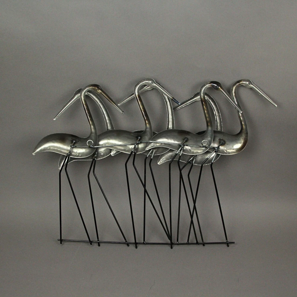 Let your home decor take flight with this sculpture of a flock of coastal birds. Creatively crafted from metal for years of maintenance free display, the the subtle painted accents makes for a great centerpiece sculpture that compliments a variety of ocean, beach, and other nautical decorative styles. Measuring 22.75 inch wide, 3 inch depth, 15.5 inch high; the built-in hangers approximately 10.5 inch apart make it quick and simple to mount in your living room, kitchen, bedroom, bathroom, den, or patio space. Makes a wonderful gift for yourself or bird loving friends and family. Our eBay Store About Us Add to Favorite Sellers Metal Flock Of Coastal Birds Wall Art Sculpture Hanging Ocean Beach Home Decor OVERALL SIZE - 22.75 Inches Wide, 3 Inches in Depth, 15.5 Inches High DURABLE MATERIAL - Crafted of High Quality Metal For Years of Maintenance Free Display COASTAL DECOR - Metal Finish With Painted Accents For A Sculpture That Compliments A Variety Of Beach And Ocean Styles EASY INSTALL - Built-in Hangers ~10.5 Inch Apart For Quick And Simple Mounting (hardware not included) GREAT GIFT - For Yourself Or Friends And Family Let your home decor take flight with this sculpture of a flock of coastal birds. Creatively crafted from metal for years of maintenance free display, the the subtle painted accents makes for a great centerpiece sculpture that compliments a variety of ocean, beach, and other nautical decorative styles. Measuring 22.75 inch wide, 3 inch depth, 15.5 inch high; the built-in hangers approximately 10.5 inch apart make it quick and simple to mount in your living room, kitchen, bedroom, bathroom, den, or patio space. Makes a wonderful gift for yourself or bird loving friends and family. Product Details Color Grey Height 15.5 Length 22.75 Weight 1.5 LB