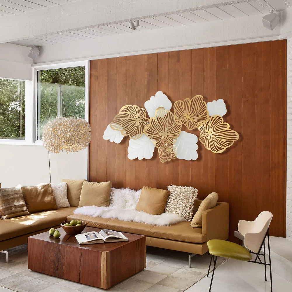 Metal Flower Wall Decor, 3D Gold Leaf Flower Decoration Modern Decor Wall Sculpt Description Everyone wants to have a beautiful and warm home. Our 3D metal wall art leaves will add some beauty to your home. It is made of hard and durable iron. The high-temperature baking paint gives it an exquisite and shiny look. The Scandinavian style makes it suitable for most home decoration styles. It is suitable for living rooms, bedrooms, hallways, galleries, cafes, restaurants, hotels, etc. Key Features Great Durability: This 3D metal wall decoration is made of hard and durable iron. It is also finished with an iron forging process, so it has a good quality with a long life span. Exquisite and Luxurious Appearance: The openwork carvings of gold flowers and white leaves give the wall decor a very luxurious and beautiful look. So it is a wonderful decoration for your room! 3D Decoration: Our 3D decoration is much more dimensional than many flat decorations. The 3D design makes the whole decoration look lifelike. Solid Structure: Each leaf of this wall decoration is welded and fixed to a metal rod . So the structure is very stable. The leaves are uneasy to deform and loose. Uneasy to Fade: This wall decoration has a high-temperature baking paint process. It stays that color for a long time. It looks new even after a long time of usage. Suitable Size: It measures 52*28inch. This size is suitable for many walls because it will not be too eye-catching and just be the finishing touch to the wall decoration. Easy to Install: This wall decoration is very simple to install. We have provided you with mounting screws. All you have to do is hang it on the wall with the screws. It is convenient and simple for you. Easy to Clean: This wall decoration is very convenient and labor-saving to clean. You can wipe the surface dust off with a towel. An Ideal Gift: This exquisite wall decoration is also a great gift. If your friends or family are having a housewarming, you can gift them this decoration. Guaranteed Customer Service: We aim to provide quality products and services. If you have any problems, please feel free to contact us. We will reply and solve the problem for you as soon as possible. Details Fine Workmanship: The golden flowers of this wall decoration are hollowed-out flowers, and the leaves are simulated leaves with real leaf textures. They make the wall decoration look very exquisite and lifelike. Smooth Surface: This surface of this decoration is finely polished and polished. So its surface is very smooth and shiny. Moreover, this decoration does not have sharp edges, so it's safer to use. Application It is suitable for living rooms, bedrooms, hallways, galleries, cafes, restaurants, hotels, etc. Specification Style: Scandinavian Style Color: White, Gold Material: Iron Exterior Paint Process: High-temperature Baking Paint Process: Wrought Iron Forging Gross Weight: 6kg/13.2lbs Product Size: 132*72cm/52*28inch Package Size: 135*75*6cm/53.1*29.5*2.4inch Installation Use a tape or straightedge to measure the product hook spacing, and then mark the point to be perforated with a pen. Use a 6mm/0.24in terminal drill to punch holes in the marked center, the length of the drill bit is the length of the expansion cap. Hit the expansion cap. Use a hammer to hit the expansion cap into the location of the drilled hole Screwing. Use a screwdriver to screw the screws into the expansion cap, leaving a distance between the screw and the wall to hang this product. PACKAGE INCLUDED 1* 3D Metal Wall Art Leaves 10* Screws Notes Please be aware that the shelf should be installed on a solid wall, not on a hollow wall. Please allow the slight color difference caused by the shooting light and 1-3 cm error due to manual measurement, and make sure you do not mind before ordering. Payment Delivery details Terms of sales About us Contact us Payment We accept ebay payment 。 Fees such as import duties, taxes are not included in the item price or shipping costs. These charges are the buyer's responsibility. Delivery details Shipping: 2-9 working days to: USA Terms of sales We maintain high standards of excellence and strive for hundred percent customer satisfaction. Feedback is very important to us. We hope that you contact us immediately before you give neutral or negative feedback, so that we can address your concerns. It is impossible to address issues if we do not know about them! About us Your satis faction is our ultimate goal. We work hard to earn your trust and future business. Our certified technicians have tested each item before shipping. The unit comes with 1 year limited warranty on all manufacturing defects. a) If you receive a defective item, you may return it or ask for a discount. Please contact us within 14 days after you receive the package. b) What you returned must be intact and in its original packaging as re? u. Customer is responsible for shipping costs of the returned item. c) We will cover the cost of shipping back t with the shipping rate indicated in the registration page. We will send you a new unit or refund the full payment you paid. Thank you. Contact us Business Hour Business Hour: Monday To Friday: 8:30 AM to 5:00 PM (Beijing China time) Due to time zones, our reply to your questions may not be immediately. But within above working time, we will reply your email within 24 hours. If it's non-workdays, please kindly be patient and wait till Monday. Please contact us with ebay message. Please feel free to contact us if you have any questions. Monday To Friday: 8:30 AM to 5:00 PM (Beijing China time) Due to time zones, our reply to your questions may not be immediately. But within above working time, we will reply your email within 24 hours. If it's non-workdays, please kindly be patient and wait till Monday. Please contact us with ebay message. Please feel free to contact us if you have any questions. Feature^ ❤Beautiful Appearance❤ Country/Region of Manufacture Unknown Brand Unbranded Tips If