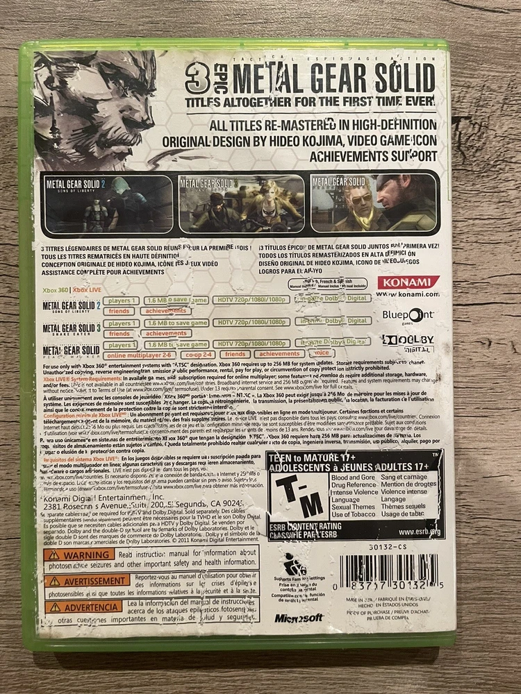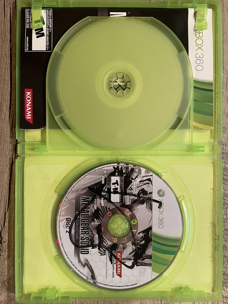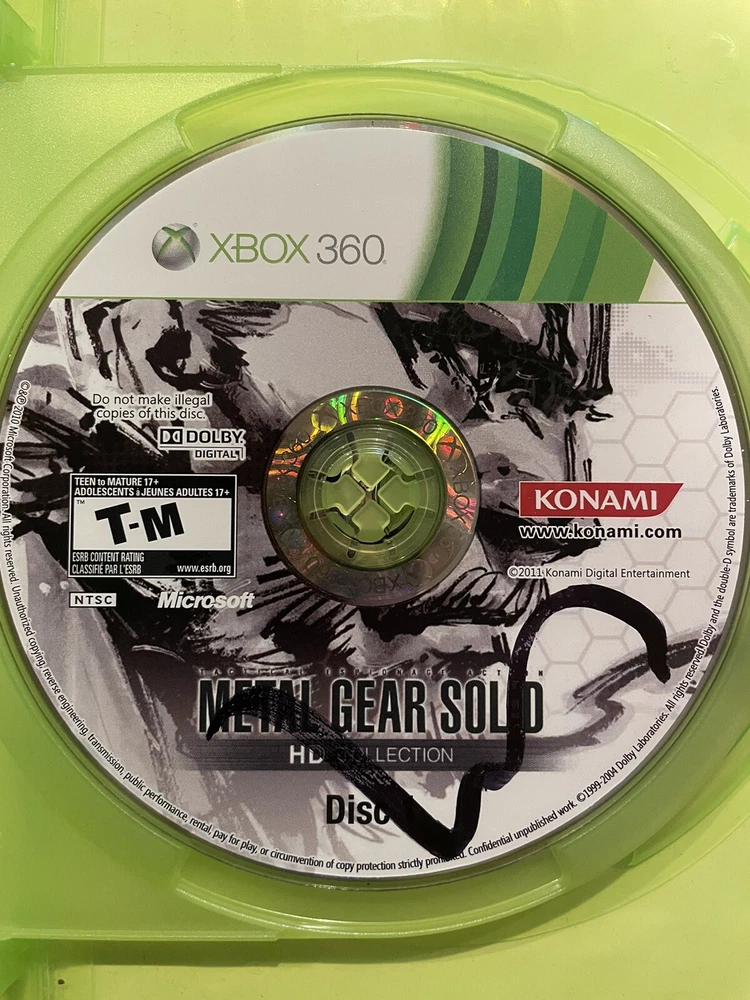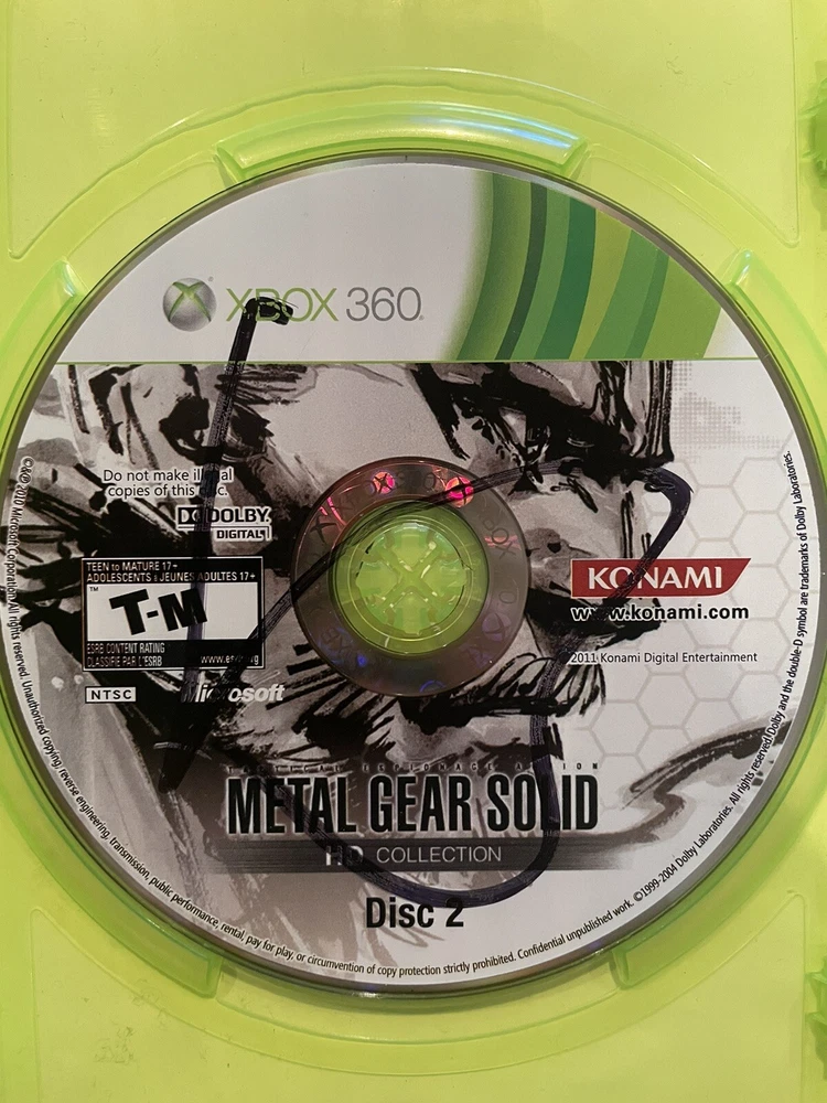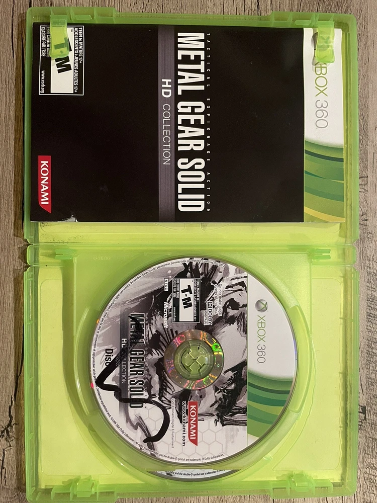 Metal Gear Solid HD Collection for the Xbox 360; CIB Game tested on a Slim Matte Black Xbox 360 and has scratches, but plays great Water damaged cover art Thank you for looking!