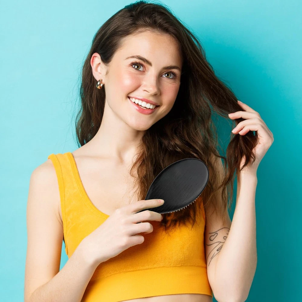 Product name: Wig brush Color: black Material: stainless steel + wood Length: 24.8x8x3.6cm Gross weight: 110g Packing list: 1pcs air cushion hair brush Pain-Free Detangling: Enjoy comb hair without pain or snagging thanks to the sleek ball-tip metal bristles. The hair brush for men is perfect for all hair types, including pets! Ergonomic Wooden Handle: The natural wooden paddle handle offers a comfortable, sturdy grip, making mens hair brush a top choice for those who prefer scalp healthy products Anti-Static Wire Hair Brush: This paddle brush reduces static charge, ensuring smooth, frizz-free hair for a more pleasant combing experience Flexible Cushion: The rubber-cushioned base of small hair brush provides better flexibility, minimizing effort and hair damage while detangling or massaging the scalp Universal Use: Ideal for wet or dry short, long, fine, thick, straight, or curly hair. The scalp brush is a versatile brush suitable for women, men, kids, and even pets, promoting healthy hair growth