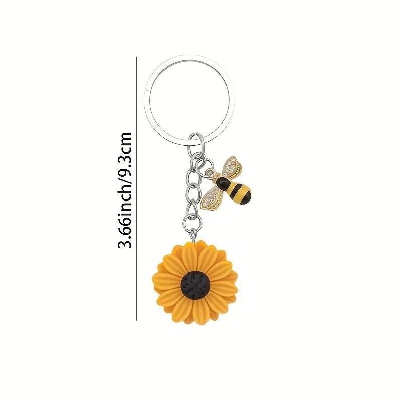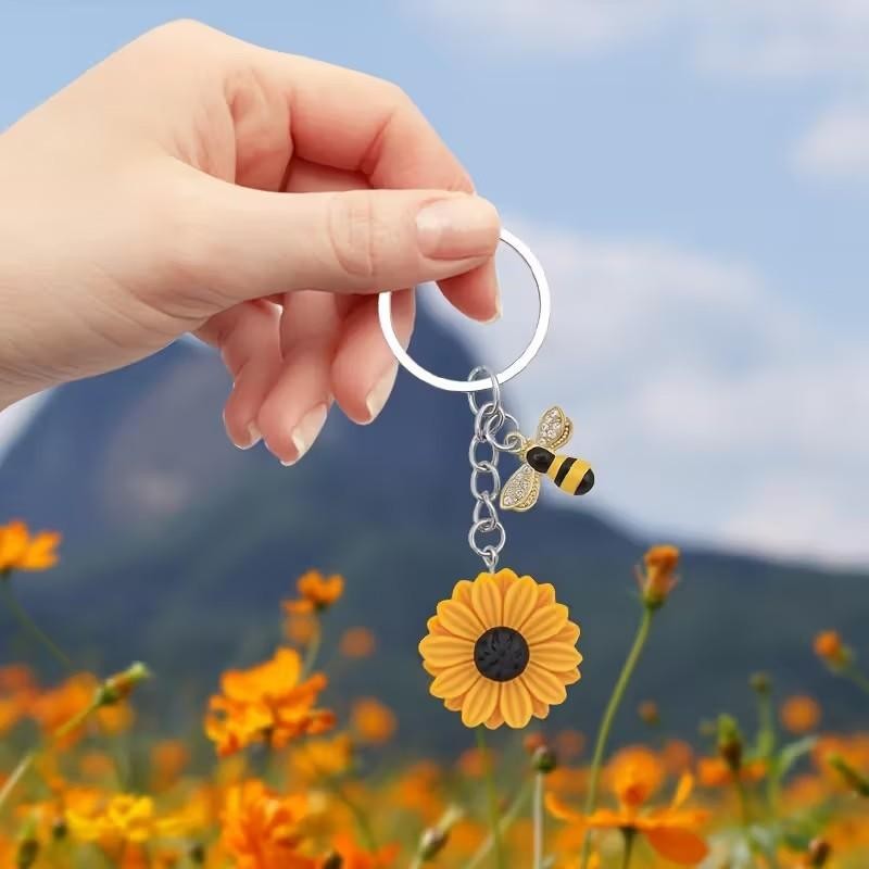 Metal Honey Bee & Sunflower Charm Keyring Keychain Gift UK