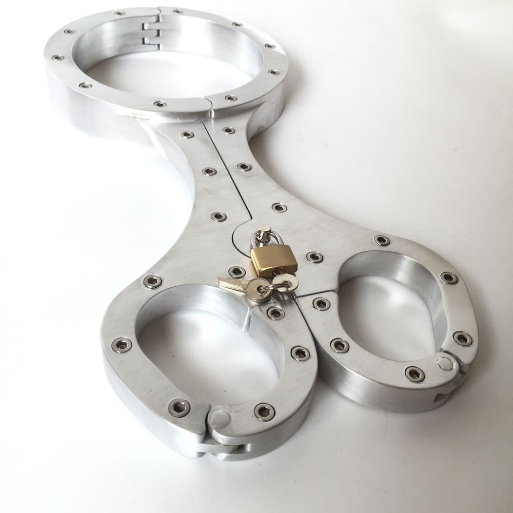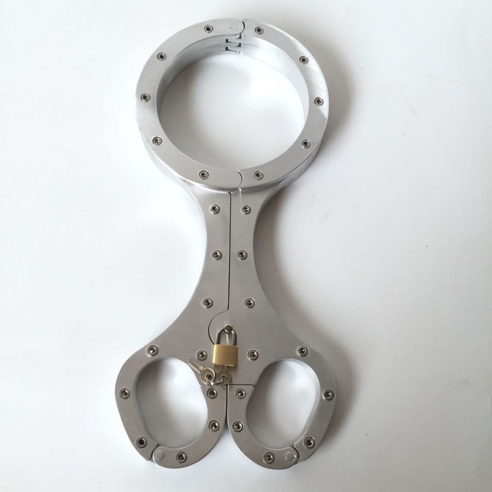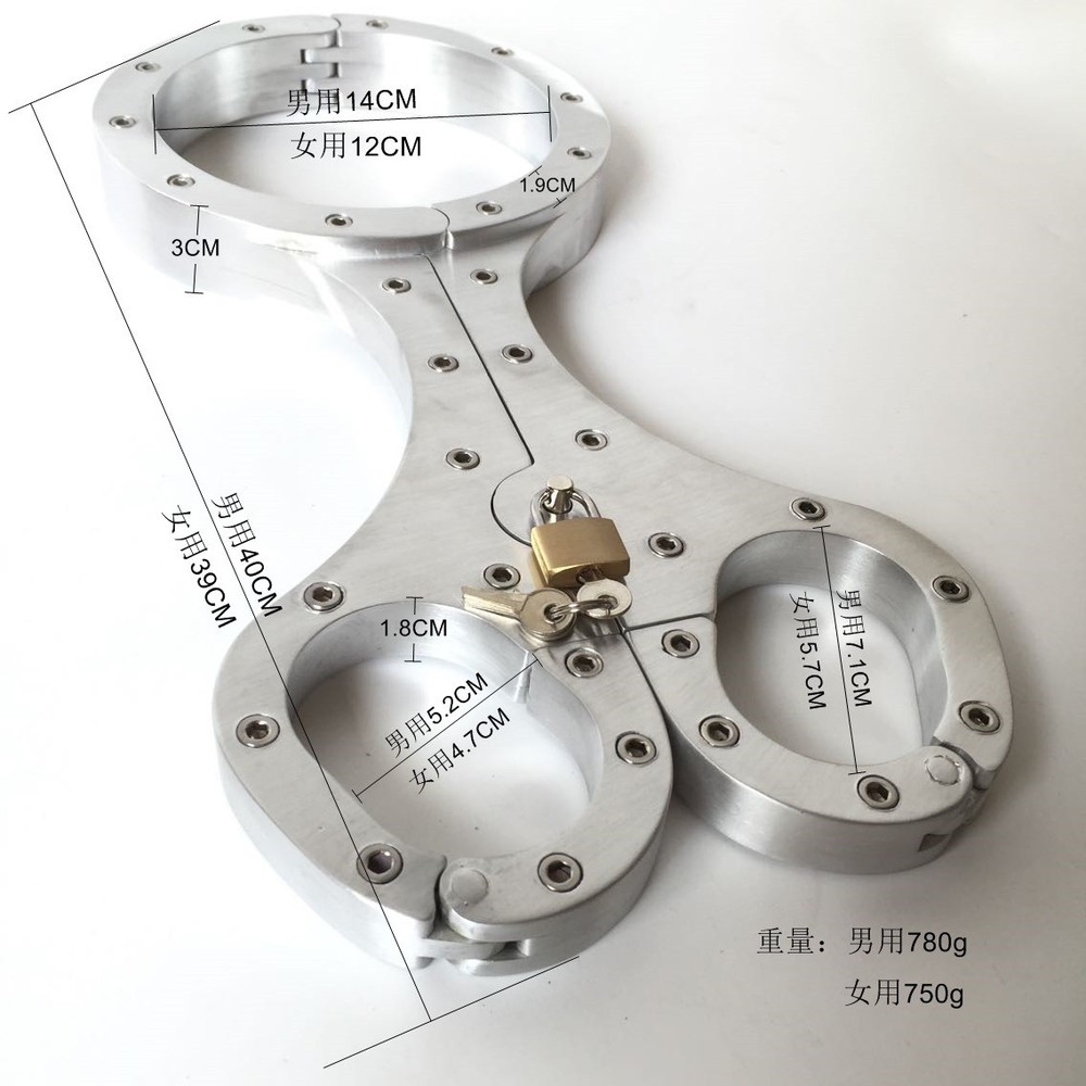 Condition:Brand New Maretial: aluminium alloy Size: Male : Total length 40 cm, Inner diameter of hand is 7.1 cm *5.2 cm, Inner diameter of neck 14 cm, Thickness 1.9 cm, Weight :780 g Female: Total length 39c m, Inner diameter of hand is 5.7 cm *4.7 cm, Inner diameter of neck 12 cm, Thickness 1.9 cm, Weight :750 g Package included: 1pc Restraint Rack Discree t Packaging.