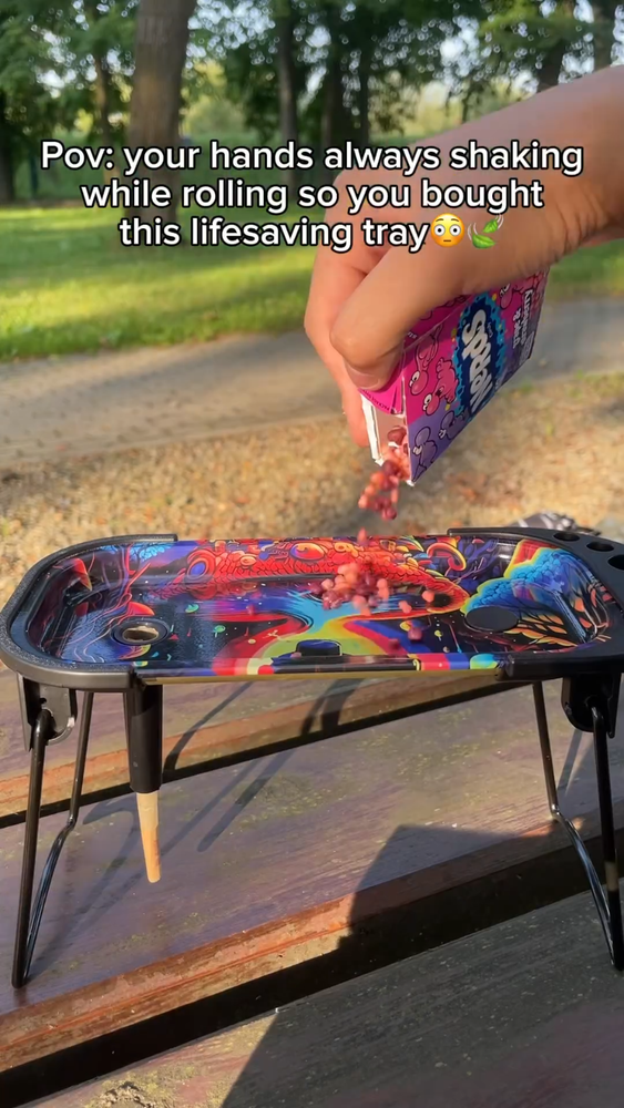Overview: 1. Foldable stand metal rolling tray cone loader includes cone funnel, cone maker, taper grove cover, and brush. 2. King-size cone funnel and 1 1/4 size cone funnel work with king & 1 1/4 size pre-roll cones from most brands. 3. Lightweight cone rolling tray. Foldable and portable. 4. Quickly and easily make perfect cones anywhere. Product Information: Color: Starry Sky, leaves, boy, Rose, double skull Style: American, light luxury Product Size: 24*11.3 * 5CM Material: Tinplate Packing List: Cigarette trays X1pcs Product Image: