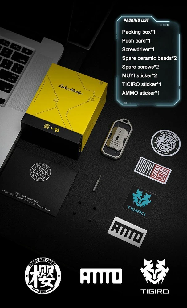 An EDC push card that can't be stopped. Double track design, silicon oxide balls, two sound waves, double enjoyment of hearing and touch. The magnet has super induction and is very smooth. When the suction and repulsion and the nail hit the base, the sense of passage is clearer and the sound is crisper. With keyhole, you can connect umbrella ropes, pendants, etc., freely match. 1pcs 1.5*6mm tritium pipe can be installed, which needs to be purchased separately. Material: TC21 titanium alloy, 304 stainless steel Dimensions: Length 70mm, Width 32mm, Thickness 10.5mm Weight: Stainless steel 99g, Titanium Alloy 62g Packing: Packing box*1, Push card*1, Screwdriver*1, Spare ceramic beads *2, Spare screws * 2, MUYI sticker * 2, TICIRO sticker*1, AMMO sticker Keep focus, relieve stress, release inner creativity and imagination. Perfect gift for creators, makers and thinkers. Shipping: Payment 1. Payments must be received within 7 days from the auction end date. 2. We are not responsible for any custom duty or import tax. Shipping: 1. All items will be shipped within 48 business hours upon receipt of payment (except weekends and holidays). (If Payments are received on weekends or holidays, goods will be shipped on the following business day. Please understand that holidays and weekends are not regarded as business days.) 2. All items will be shipped by SpeedPAK or Registered Airmail with tracking number. 3. Buyer confirms (offers) address & Phone number after order item. Contact Us If you have any questions, please contact us via the eBay Message System before leaving any negative feedback or open any dispute on PayPal. To e-mail us, please click the 'Ask a question.