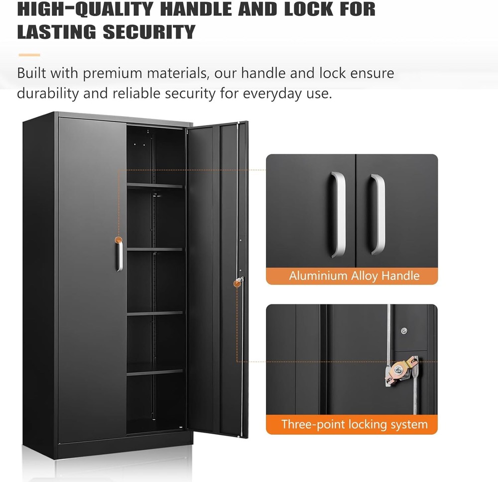 The item was shipped through US Stock, so it arrived faster than expected All items are brand new and unopened, 100% authentic, 24 hours message reply Metal Storage Cabinet with Adjustable Shelves, Pantry Cabinet with 2 Doors, Lockable Garage Storage Cabinet, Tool Cabinet, File Storage Cabinets -71" Black Brand: Allouncer Color: Black Recommended Uses For Product: Closet Cabiinet, Files & Folders, Pantry Cabinet, Kitchen Storage Cabinet, Garage Storage Cabinet, Tool Cabinet, Food Storage Cabinet, Laundry Cabinet Product Dimensions: 15.7"D x 31.5"W x 70.87"H Special Feature: Dent Resistant, Dent Proof, Heavy Duty, Scratch Resistant, Adjustable Shelf About this item Practical Design and Superior Load-bearing Capacity: Our metal storage cabinet is equipped with locks and 5 adjustable shelves, offering flexible storage space and convenient usability. Each shelf can withstand 200 pounds, making it ideal for garage storage, kitchen pantry storage, and laundry room cabinets. Whether you need to store pantry items, tools, or laundry essentials, our cabinet provides secure and organized storage. Spacious Design and Versatile Application: Besides serving as an ideal pantry cabinet or garage storage cabinet, our unit's interior design creates additional space, providing ample storage room for your belongings. Suitable for various settings, from kitchen storage cabinets to metal storage cabinets in the garage, our cabinet meets diverse storage needs, ensuring item safety and organization. Exceptional Durability and Outstanding Security: Crafted from high-quality cold-rolled steel plate, our metal cabinet boasts robust construction for long-lasting durability. Enhanced with advanced lock cores and a three-point locking system, it guarantees the security of your valuable items. Ideal for locking cabinets in the garage or tool cabinets in workshops. Thoughtful Design: Our tall cabinet not only prioritizes functionality but also emphasizes aesthetic design. With its sleek and modern appearance, it blends practicality with style, suitable for various environments such as laundry cabinets or kitchen pantry cabinets, adding a touch of sophistication to your space. Multi-functional Storage: Featuring a cleverly designed interior with adjustable partitions, our storage cabinet with doors and shelves accommodates items of various sizes and shapes. Whether it's documents, tools, appliances, or pantry items, they can be neatly organized and maximally utilized, ensuring orderly storage and efficient space utilization.