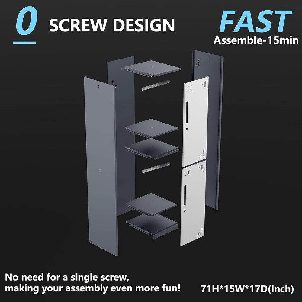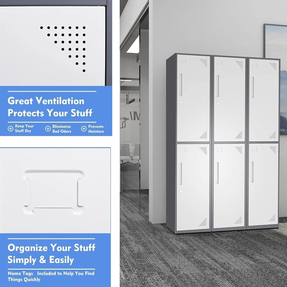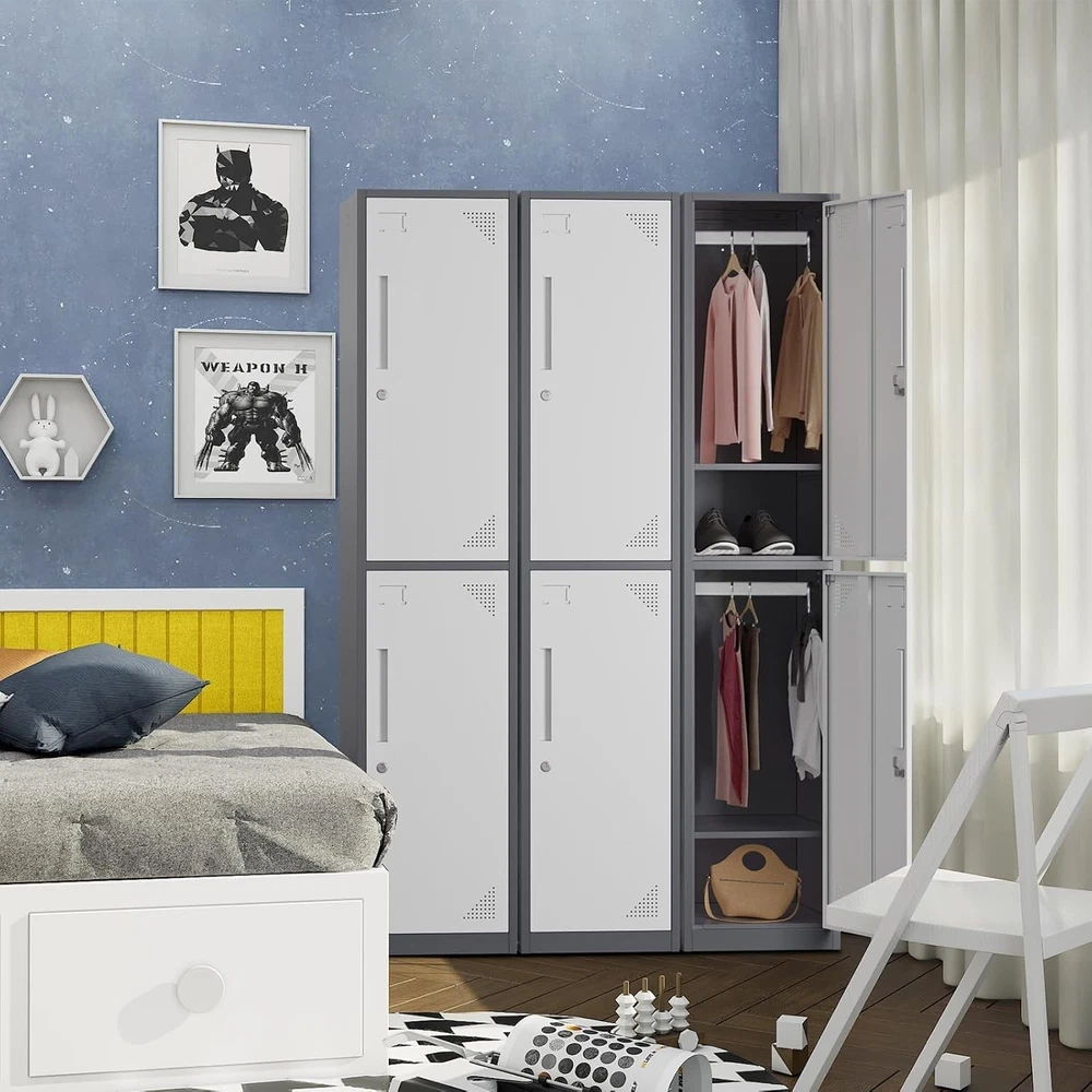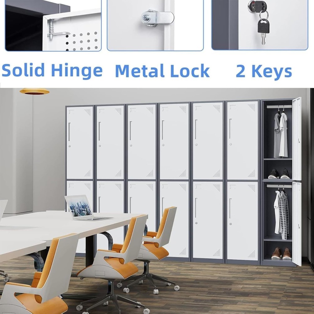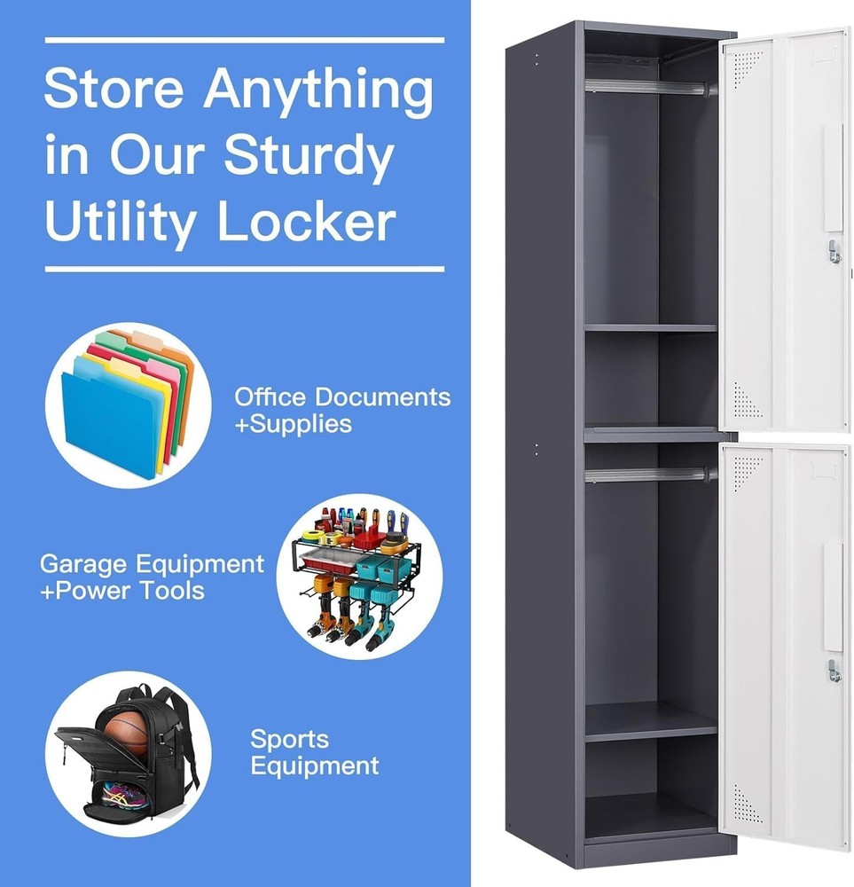 Product Description Metal Lock: Imported steel locks, strong and durable. Anti-theft and tamper-proof, high safety factor Upgraded Materials: metal storage cabinet is made of 0.6mm reinforced full-steel frame construction, plate adopted environmentally powder coated finish, capacity to resist corrosion and rust,more durable than wood cabinets. Large Storage Capacity: Equipped with 4 separate compartments to meet your storage needs for items of different sizes and meet most of your daily needs. Store handbags, coats, etc. Thoughtful design: Get the perfect storage solution for any room in your house with the Single Metal Locker Storage Cabinet. Features stainless steel hooks for hanging coats. Metal Locker with keys (2 Door) Package Contents: With three independent storage spaces, it can meet your different storage needs. --1 Door with Lock and Keys --Metal Hook * 4 --Lockers for Employees --Lockers for break room --Larger Storage Capacity About this item Spacious Compartments: These ventilated lockers for employees or for home provide all the space needed to secure belongings. Thoughtful Design: Name tags can help you find thing quickly ,Organize your stuff simply & easily.Every tier of the metal locker storage cabinet is equipped with a latch compatible with the most commonly used combination locks or padlocks. Multiple Uses: Steel storage locker with simple and compact appearance can easily blend with most of places, such as school, home gym, locker room, porch, dressing room, office, dorm room,classroom.etc. Sturdy Metal Construction: Made of durable recyclable metal material with powder coating surface, this pantry cabinet is built to last. The metal construction not only offers large load capacity but also makes it scratch and rust-resistant. Easy Assemble: The necessary hardware and detailed assembly instructions are included in the package. With simple step-by-step directions and minimal parts, the locker is very easy to assemble. On Aug 14, 2025 at 03:54:38 PDT, seller added the following information: