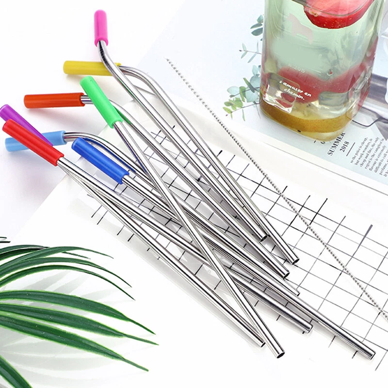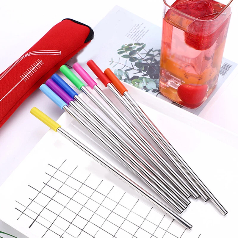 Reusable Stainless Steel Straight Bent Drinking Straws with Silicone Tips Straw Feature: 100% brand new and high quality. Description: Item Type:Stainless Steel Straws Style:Casual,Fashion Material:Stainless Steel Size:215*6mm/8.46*0.23inch Color:Red,Pink,Orange,Purple,Yellow,Green,Dark Blue,Light Blue Packing:1set Stainless Steel Straws Note: Please allow1-2cm measuring deviation due to manual measurement. Due to the difference between different monitors, the picture may not reflect the actual color of the item. Thank you.