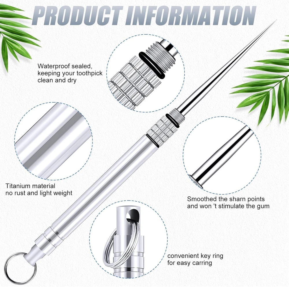 Store New Arrivals Add to Favorite View Feedback Contact Metal Toothpicks for Teeth, 8Pcs Silver Retractable Stainless Steel Toothpick with Titanium Protective Case Holder, Multifunctional Steel Toothpick for Travel Picnic Camping Description Item model number 31T-MetalToothpicks-Silver Color Silver Package Dimensions 4.06 x 1.81 x 0.75 inches; 1.59 ounces Manufacturer WDAHDHP VALUE PACKAGE: You will get 8pcs silver portable titanium toothpicks, sufficient quantity can not only meet your and your family's daily needs, but also serve as a gift for friends PREMIUM MATERIAL: These pocket toothpicks are made of high quality titanium alloy, smooth and strong, rust-resistant and ensuring long-lasting use EASY TO CARRY: The metal toothpick keychain small and functional, you can put it in your pocket or hang it on the keychain, which is very convenient, won't bring much burden PRACTICAL GIFTS: Travel metal toothpick perfect for your family and friends on Birthdays, Easter, Halloween, Christmas and anytime WIDELY APPLICATION: Reusable toothpicks not all great for cleaning teeth but also as forks or stirring rods, great for backpacking, camping, hiking, travel etc PACKAGE: 8PCS ABOUT US We offer the best prices around on high quality products. Our E-store includes media such as books, movies, music and games while offering electronics, toys, sporting apparel, clothing, tools, general home, garden items and more. SHIPPING We are always working hard to ensure your package arrives as soon as possible. Please understand that some factors like weather, high postal traffic, and the performance of shipping companies are outside of our control. We offer free shipping to the lower 48 states and ship within 2 business days of payment, usually sooner. We do not accept P.O. Boxes. Please provide a physical address. RETURNS We offer a 30-Day Return Policy on items which you are not completely satisfied with. You have the option for a full-refund or an exchange of the item. No returns are available on items shipped outside of the USA. PAYMENT We accept PayPal. CONTACT US This page content is yet to come Please ad us to your favorite seller and visit again later Thank You CUSTOMER SATISFACTION We try our very best to make sure every customer is completely satisfied. If there's a problem, message us! We're happy to help.