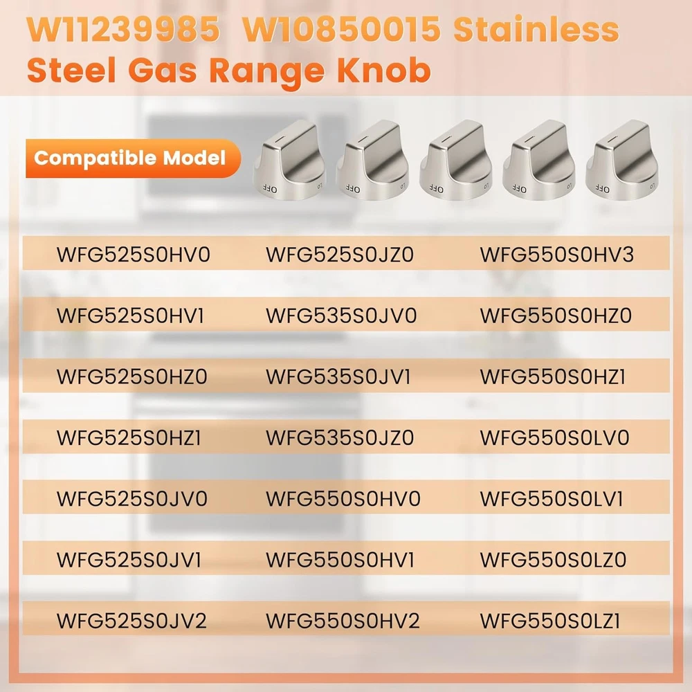 Free eBay listing template designed by dewiso.com Metal W11239985 W10850015 Stove Knob Replacement Compatible with Whirlpool WFG525S0HZ1 WFG550S0HZ0 WFG525S0HZ0 WFG525S0JV0, W11032553 Range Oven Knob Replace PD00061875 4845290 AP6333411 PS12578779 FREE AND FAST SHIPPING! About this item 【Product Upgrade】: W11239985 replacement knobs is made of Alloy as a whole, which is more heat-resistant, wear-resistant, won't burn your hands and other features, overall reinforcement, not easy to deform. With a thick solid center ring, after 50,000 times of rotation experiment, the knob is smooth as usual. 【Compatible Models】:This stove knob replacement is specially designed for Whirlpool gas stove W11239985,4845290, PS12578779 knob compatible with models WFG525S0HV1, WFG550S0HV1, WFG550S0HZ1, WFG550S0LZ1, WFG525S0HV0 and more. 【PERFECT FIT】:This WFG550s0hz0 knobs can be highly matched with the original fittings of your oven or gas cooktop, making it easy to control and adjust accurately. The gas cooktop knobs designed specifically for Whirlpool ovens/stoves will fit your oven better and provide better cooking results than generic styles. 【Easy to Install】: The stove knobs WFG525S0HV1 is designed for efficiency and comfort. It is simple to install and easy to use, you don't need any tools to replace broken knobs and get your stove running again, saving you time. 【After-sales service】: We are committed to customer satisfaction. If you are not satisfied with the product for any reason, please contact us. We will provide you with a satisfactory solution within 12 hours. Product We offer a 30-Day Return Policy on items which you are not completely satisfied with. You have the option for a full-refund or an exchange of the item. No returns are available on items shipped outside of the US . Shipping We offer Free Shipping to the US and ship within 2 business days of payment, usually sooner. We use UPS express shipping. That's why your products are usually delivered within 3 days . Contact We try our very best to make sure every customer is completely satisfied. If there's a problem , message us! We're happy to help. 24/7 live chat available.