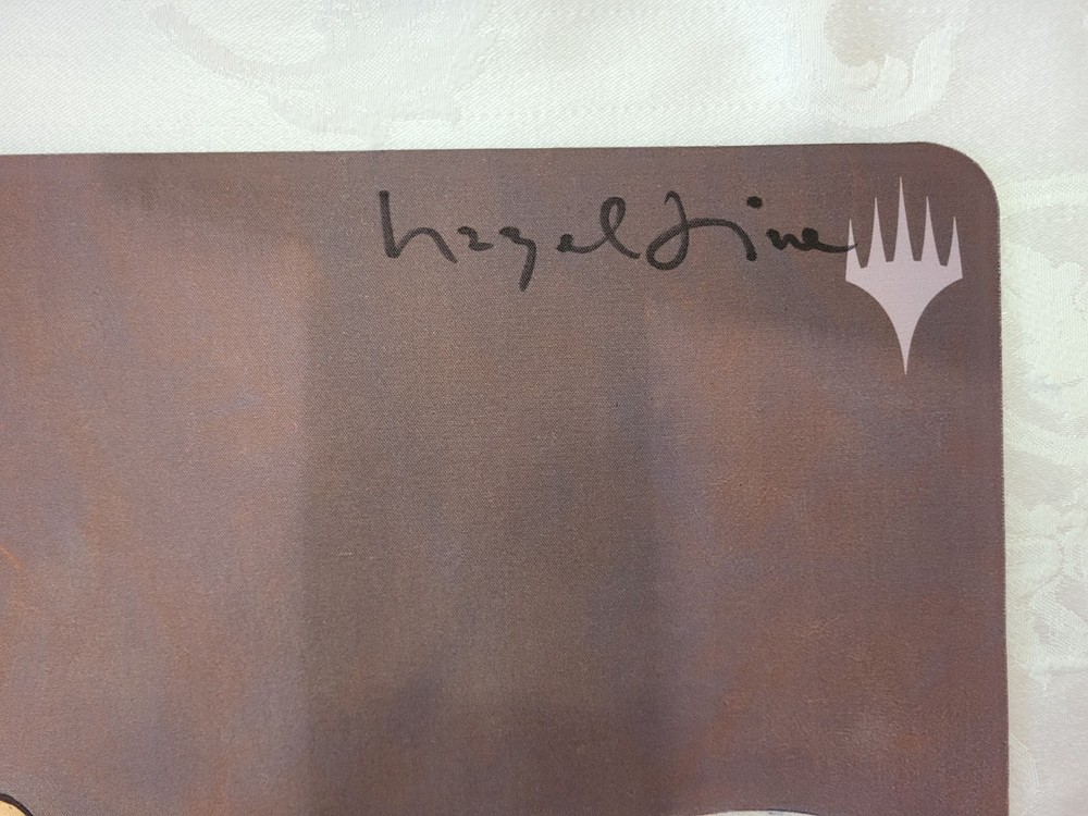 Our family supports a network of small businesses by purchasing from them instead of operating a game store ourselves. When you purchase from us you support these small game stores. This listing is for Metal Worker SIGNED MTG Play Mat. It features the artwork of Don Hazeltine, he has signed this mat by hand. I purchase these directly from his Art Agent. Dimensions are 14 ' x 24 '. This is a special limited edition Official Wizards of The Coast mat. Please let me know if you have any questions. I am always happy to help.