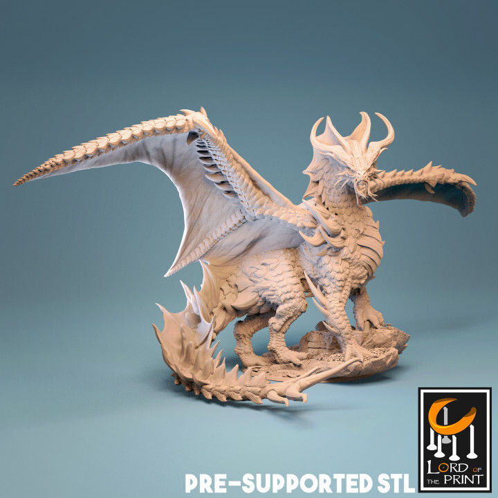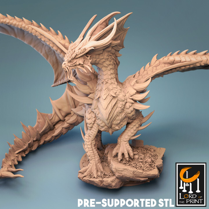 WE NOW OFFER CUSTOM PAINTJOBS FOR ALL OUR MINIS. CONTACT US FOR A QUOTE. Gold Dragon miniature Approximate Size: GARGANTUAN - 100mm (4") Base: 448mm x 189mm x 318mm with a 515mm (20.25") wingspan HUGE - 75mm (3") Base: 336mm x 142mm x 238mm with a 386mm (15.2") wingspan LARGE - 50mm (2") base: 96mm x 159mm x 225mm (9") wingspan Printed in high quality, durable resin. original digital model designed by *rescale miniatures* THIS MODEL COMES IN MULTIPLE PARTS. ASSEMBLY AND FITTING OF JOINTS IS REQUIRED! We take special size requests. If the listing does not have the size you are looking for, send us a message and we can do it for you. Your figure will be 3D printed in resin, roughly cleaned of supports, and then cured. We do our best to remove as many of the support marks as we can, but some light cleaning, sanding and assembly may still be required This listing is for an unpainted highly detailed miniature. NORMAL PROCESSING TIME FOR ORDERS IS 14 - 21 DAYS. IF YOU HAVE PLACED AN ORDER THAT NEEDS CUSTOMIZATION SUCH AS RESIZING, THIS TIME MAY BE EXTENDED.CUSTOM SIZE REQUESTS NEED TO BE MADE BEFORE ORDERING AS IT MAY AFFECT THE PRICING. MESSAGE US FIRST FOR DETAILS *MANY MODELS CONTAIN SMALL PARTS WHICH COULD BE A CHOKING HAZARD AND ARE NOT INTENDED FOR SMALL CHILDREN. ADULT SUPERVISION MAY BE REQUIRED WHEN CLEANING OR ASSEMBLING